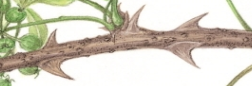 줄기에는 밑부분이 넓은 삼각형의 가시가 있습니다.