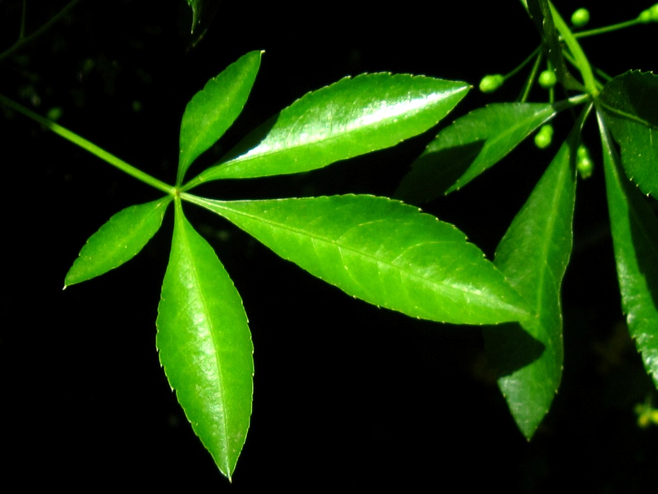 잎은 작은잎 3~5개로 이루어진 손꼴겹잎으로 작은잎은 넓은