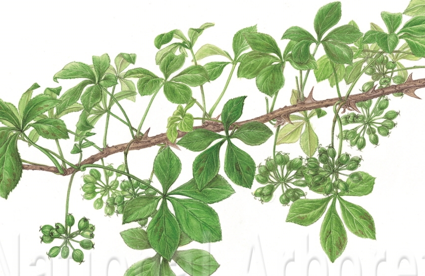 가시오갈피나무와 달리 줄기에는 가시가 거의 없습니다.