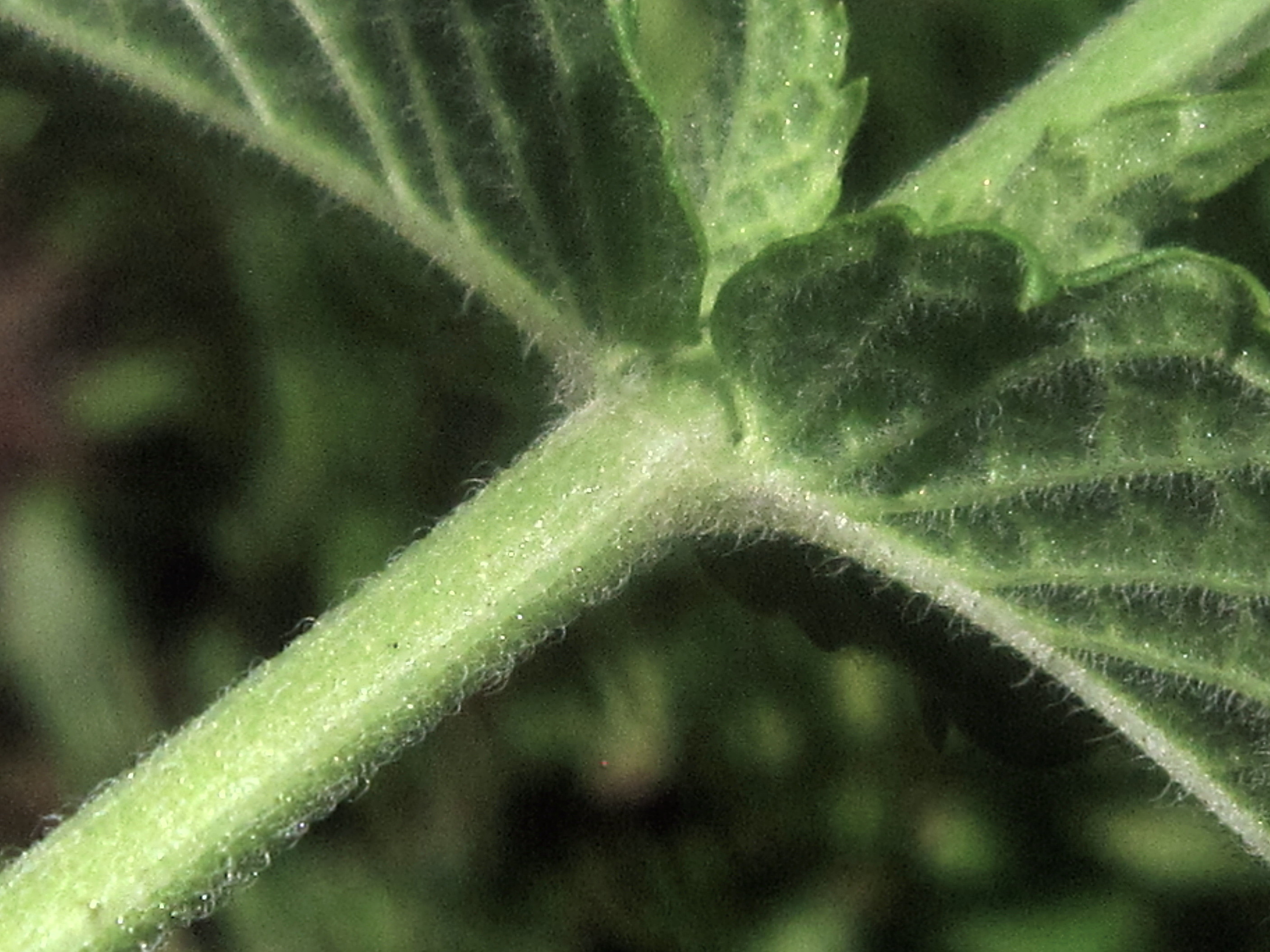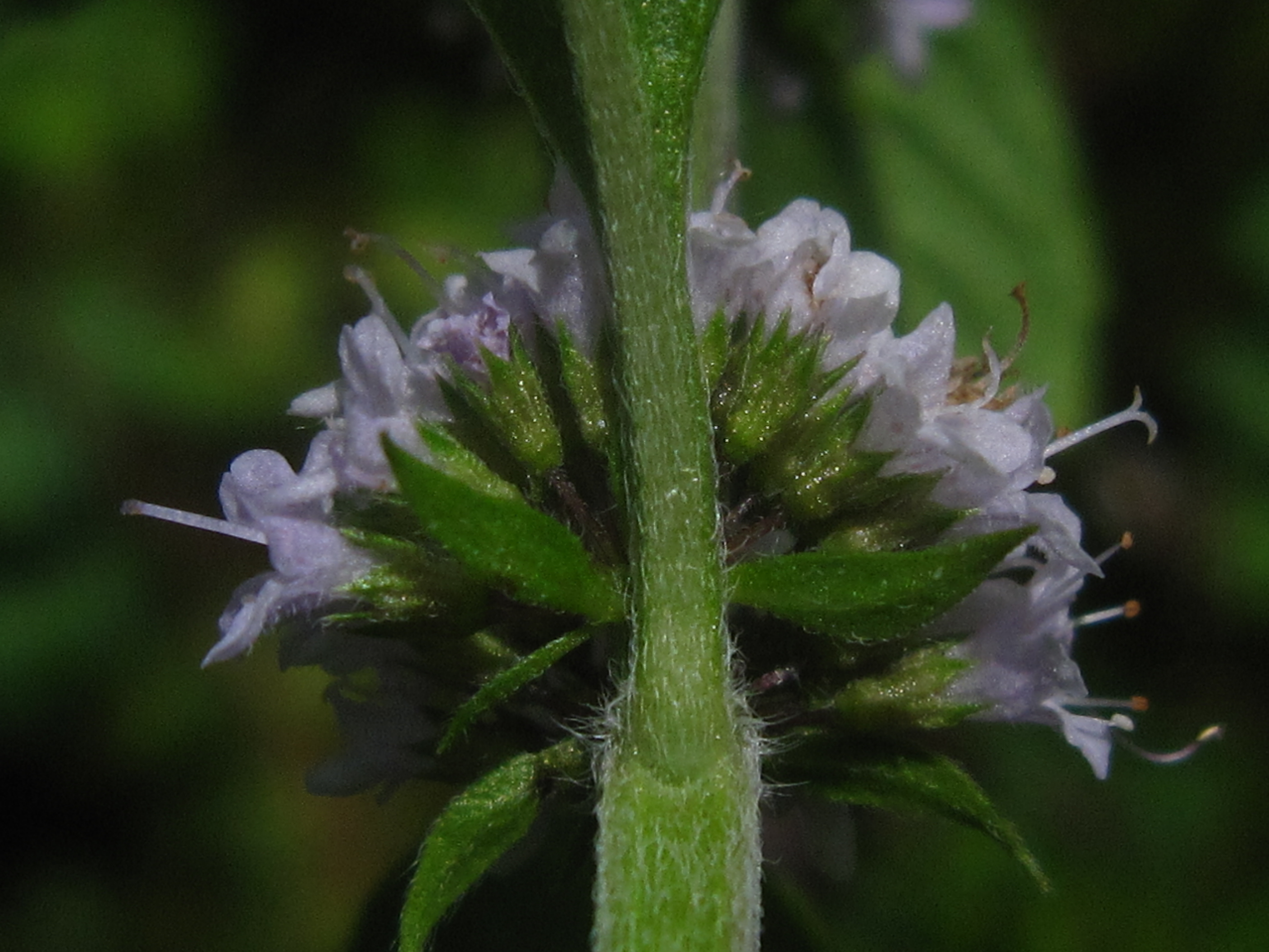 줄기의 능각, 잎과 작은꽃자루, 꽃받침 등에 털이 많은 점에서 박하와