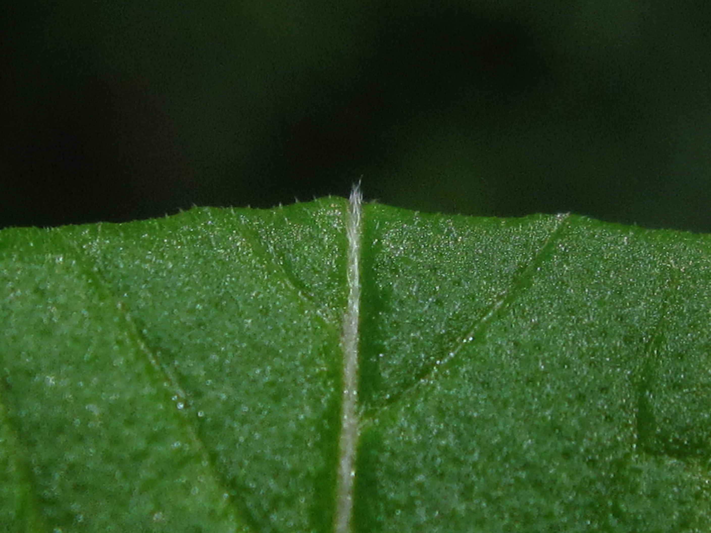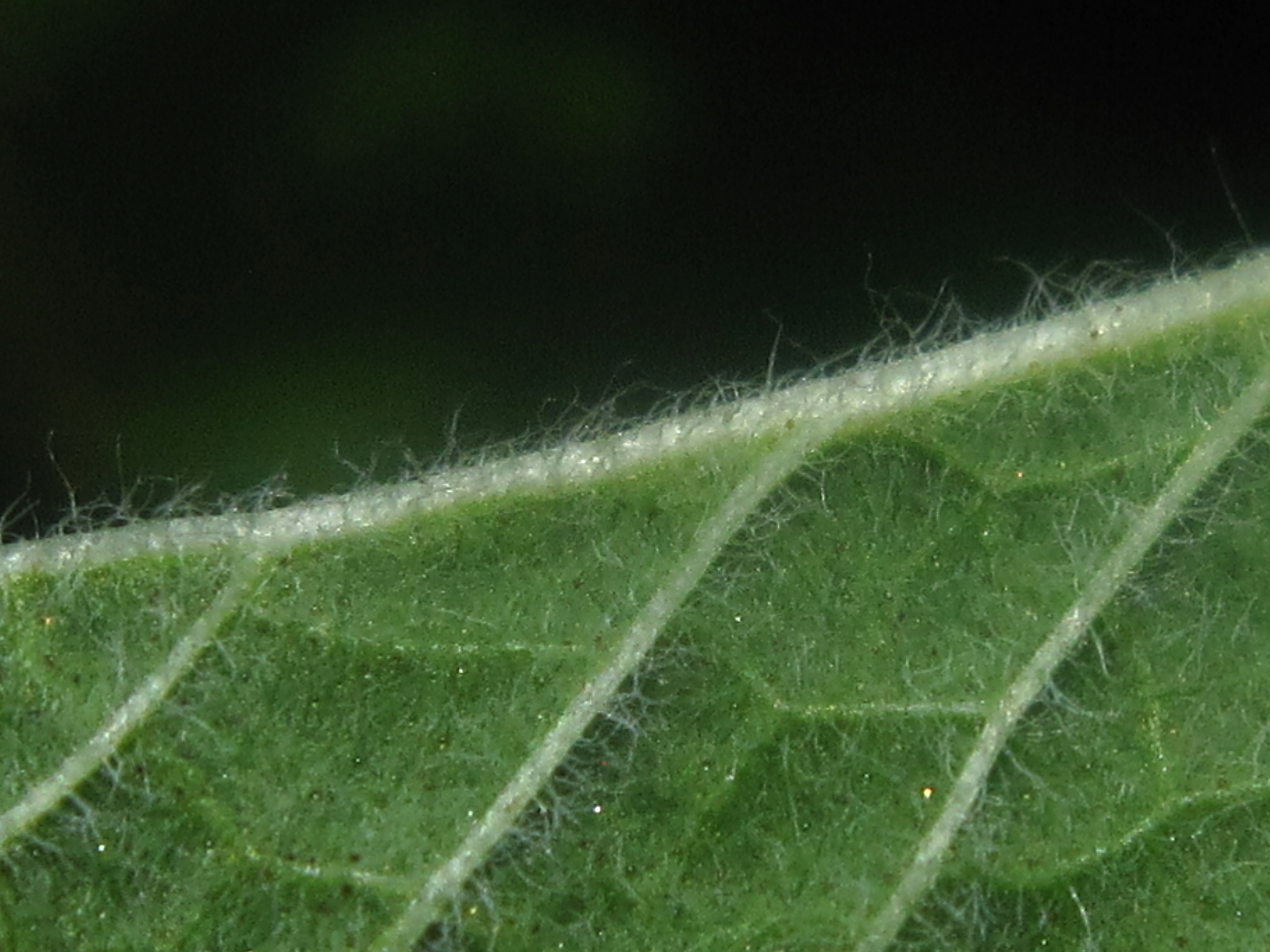 잎 양면과 줄기를 포함하여 전체에 가는 흰색 털이 밀생합니다.