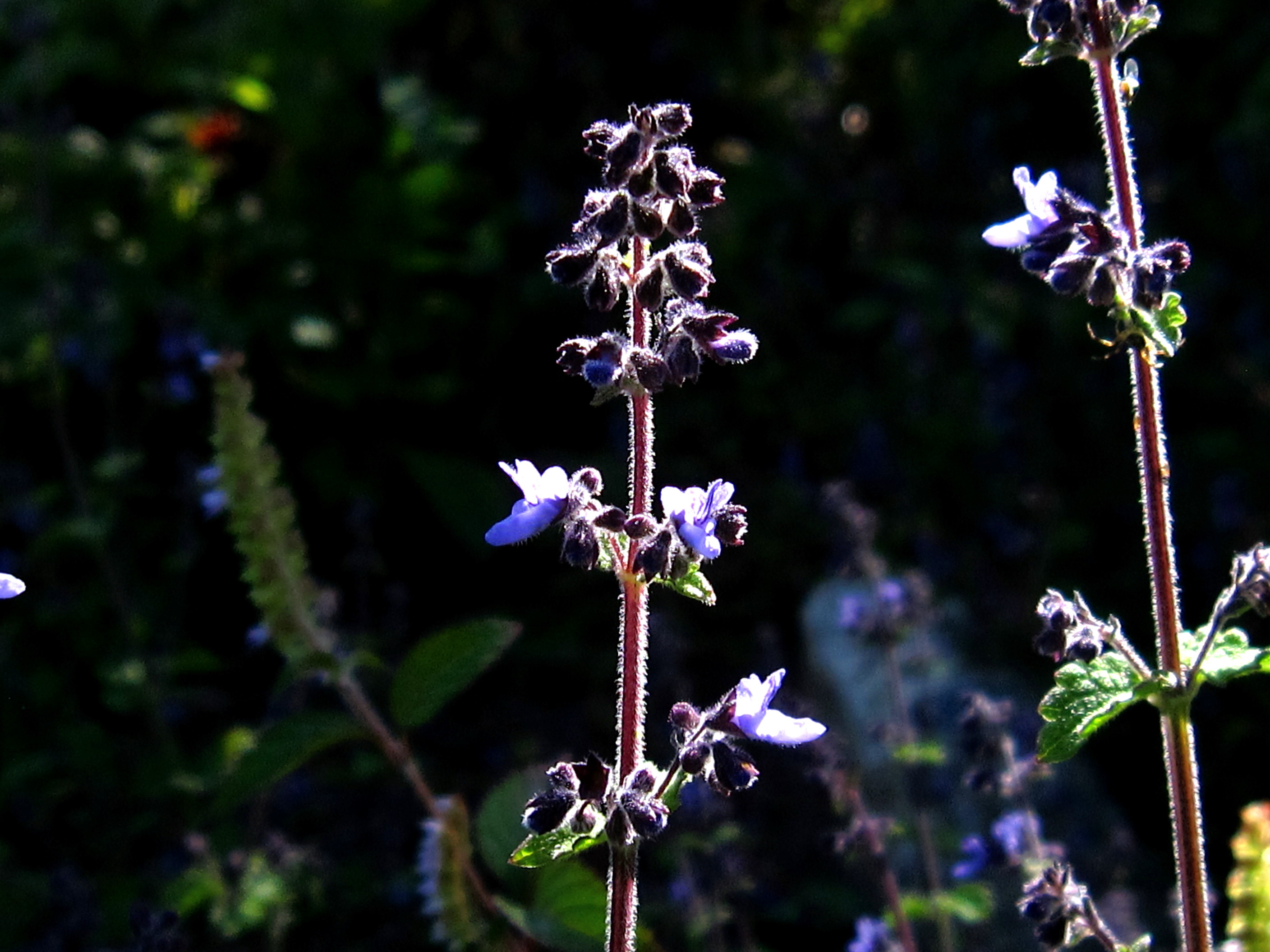 줄기는 네모진 능선에 밑을 향한 짧은 백색 털이 있습니다.