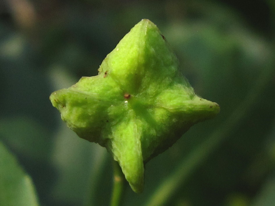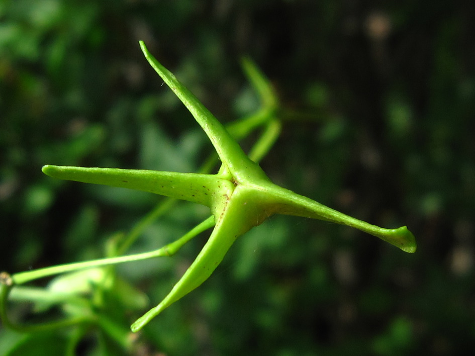꽃잎이 5개이며 꽃잎 밑부분이 좁아 그 사이로 꽃받침이