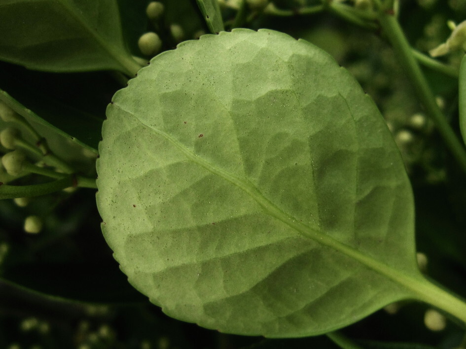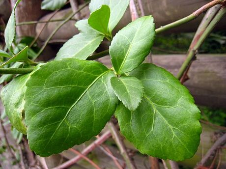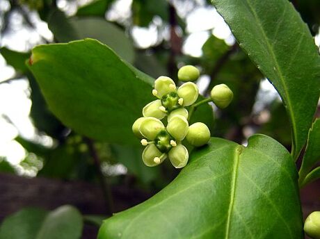 잎 앞면은 짙은 녹색으로 윤이 나며, 뒷면은 노란빛이