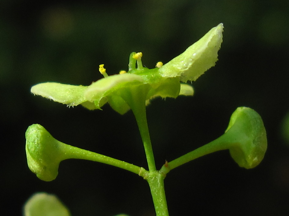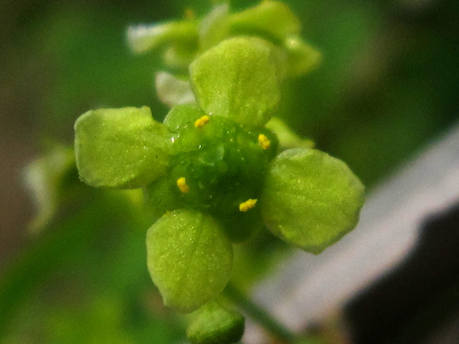 꽃은 녹백색이고 수술대가 매우 짧습니다.