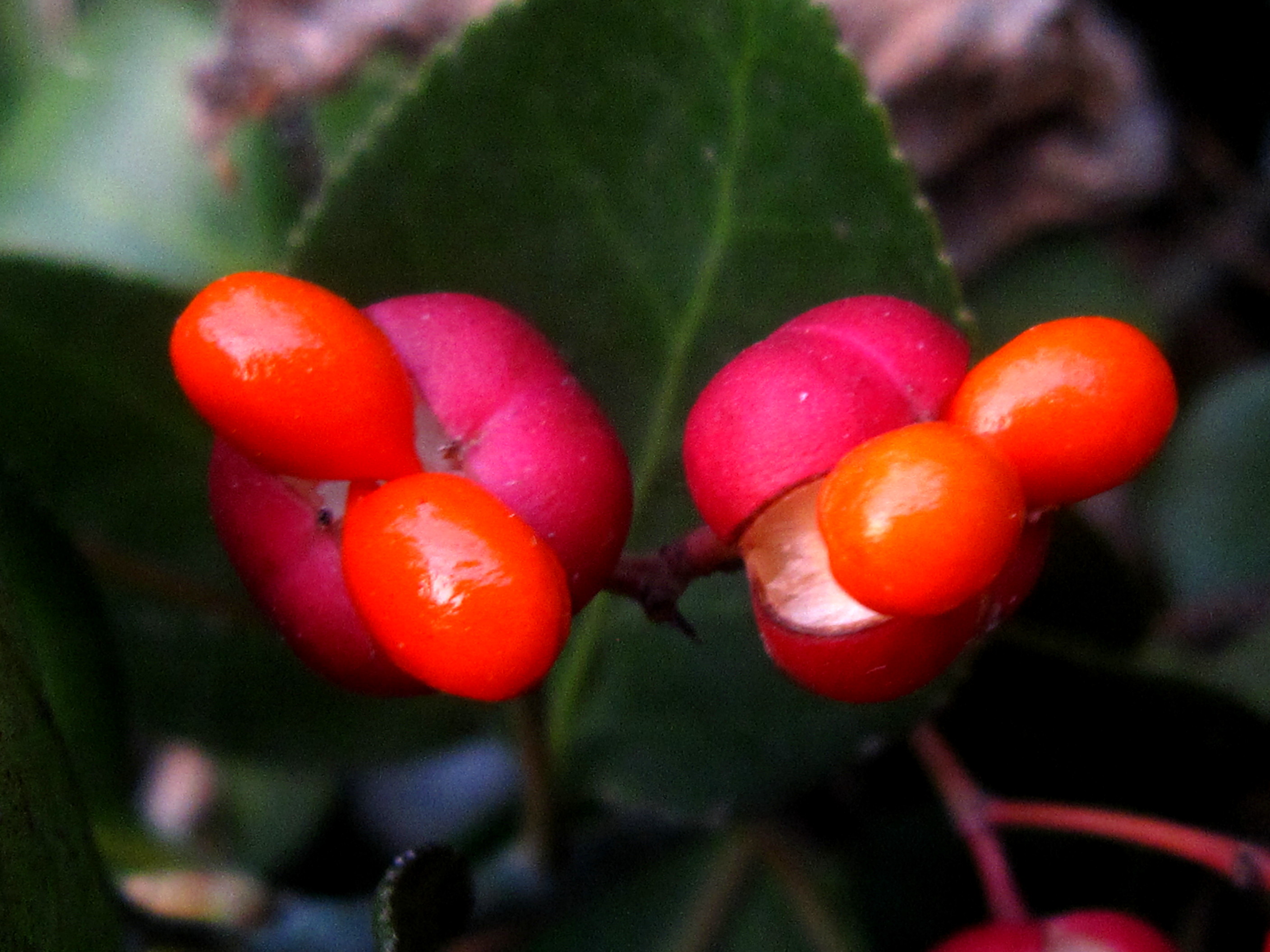 회나무처럼 종자는 검은색인데 붉은색 가종피로 싸여 있습니다.