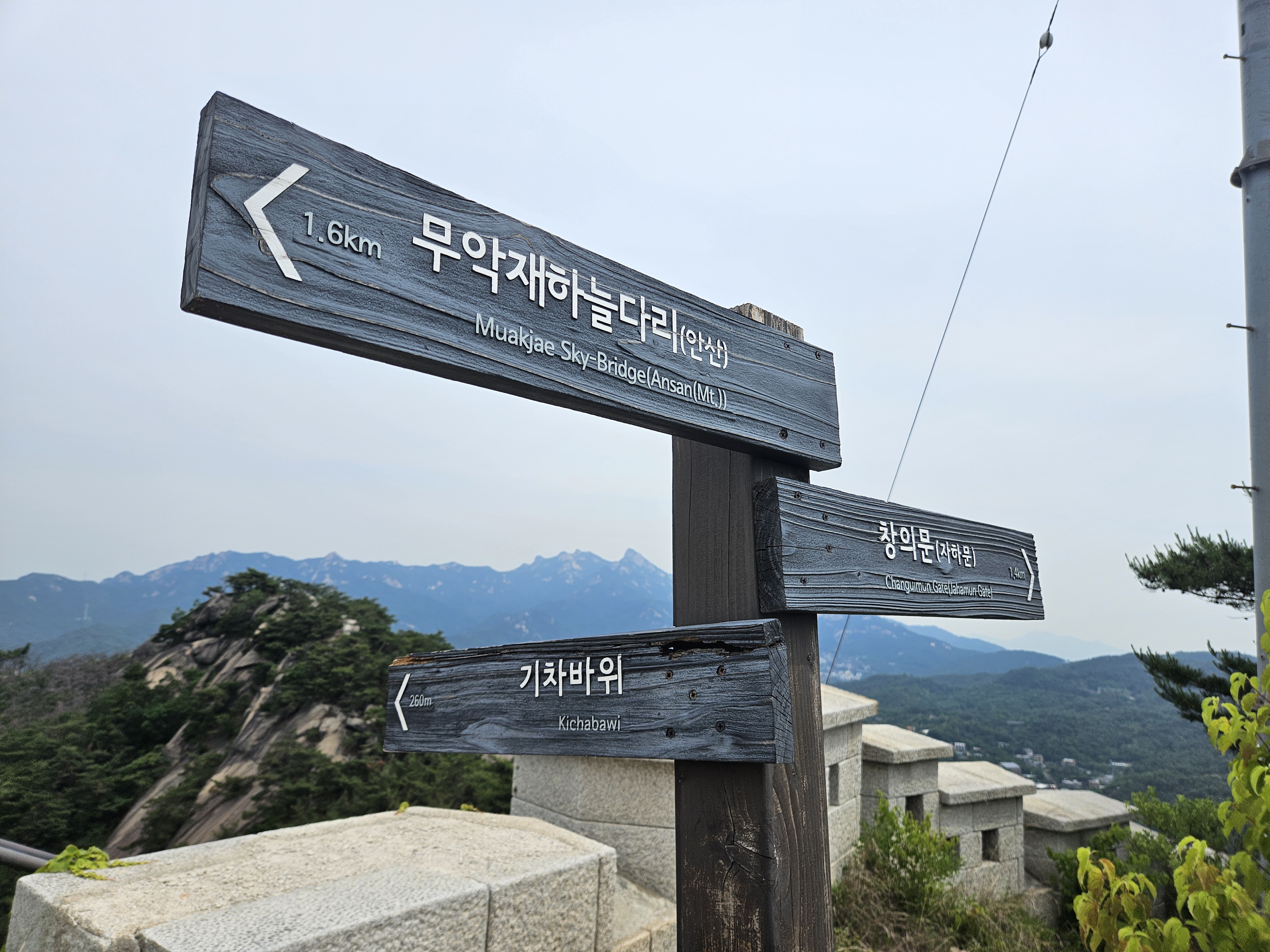 - 무악재하늘다리 - 해골바위/선바위 - 장군바위 - 인왕산 정상 - 기차바위