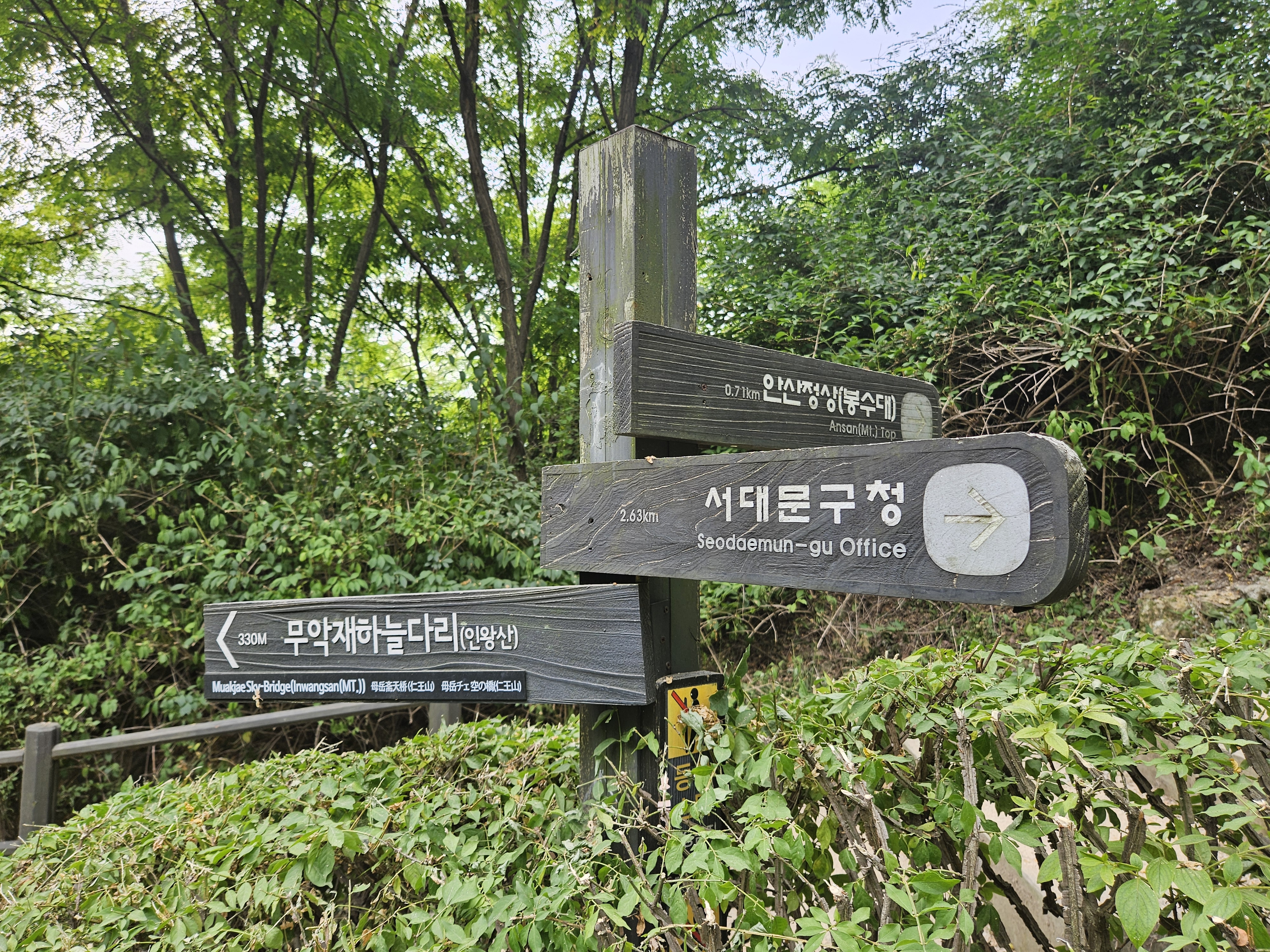이정표에서 무악재하늘다리란 이름을 만나면 그쪽으로 진행합니다.