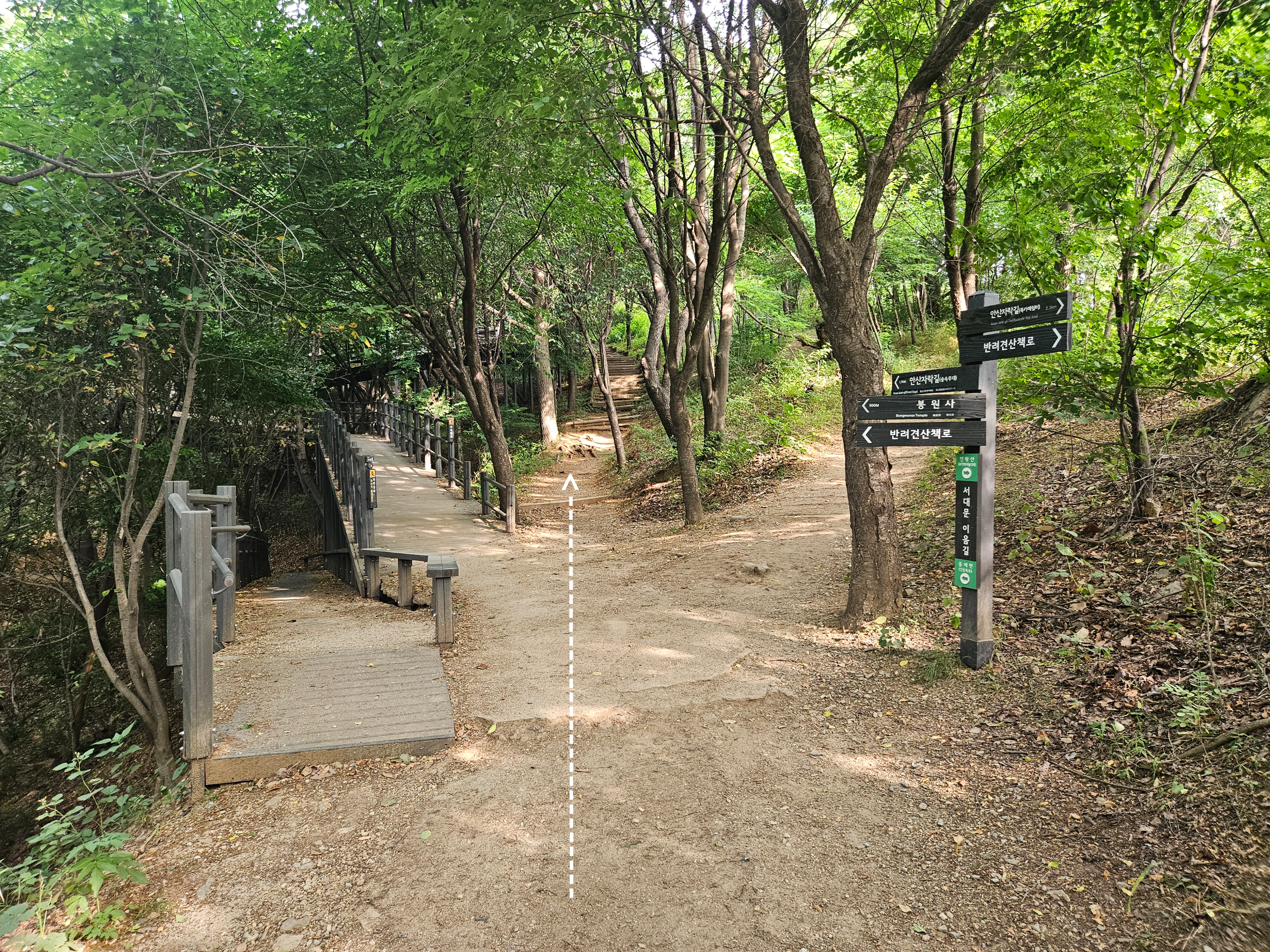 다리를 건넘으로써 안산 구간에서 인왕산 구간으로 넘어갑니다.