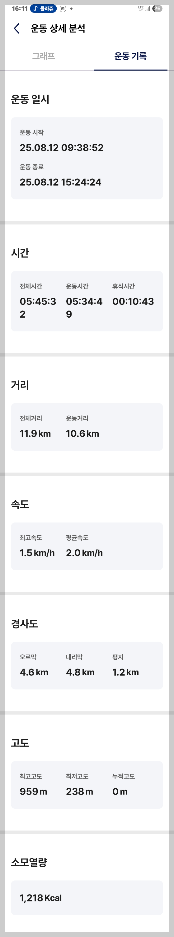 ● 이동거리 및 소요시간 :11.9 km. 5시간 45분