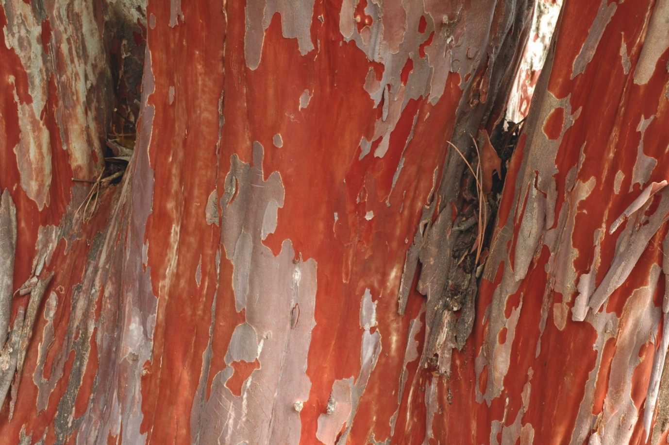 수피가 벗겨진 자리는 흰색 ~ 연한 회색이고 꽃은 흰색입니다.