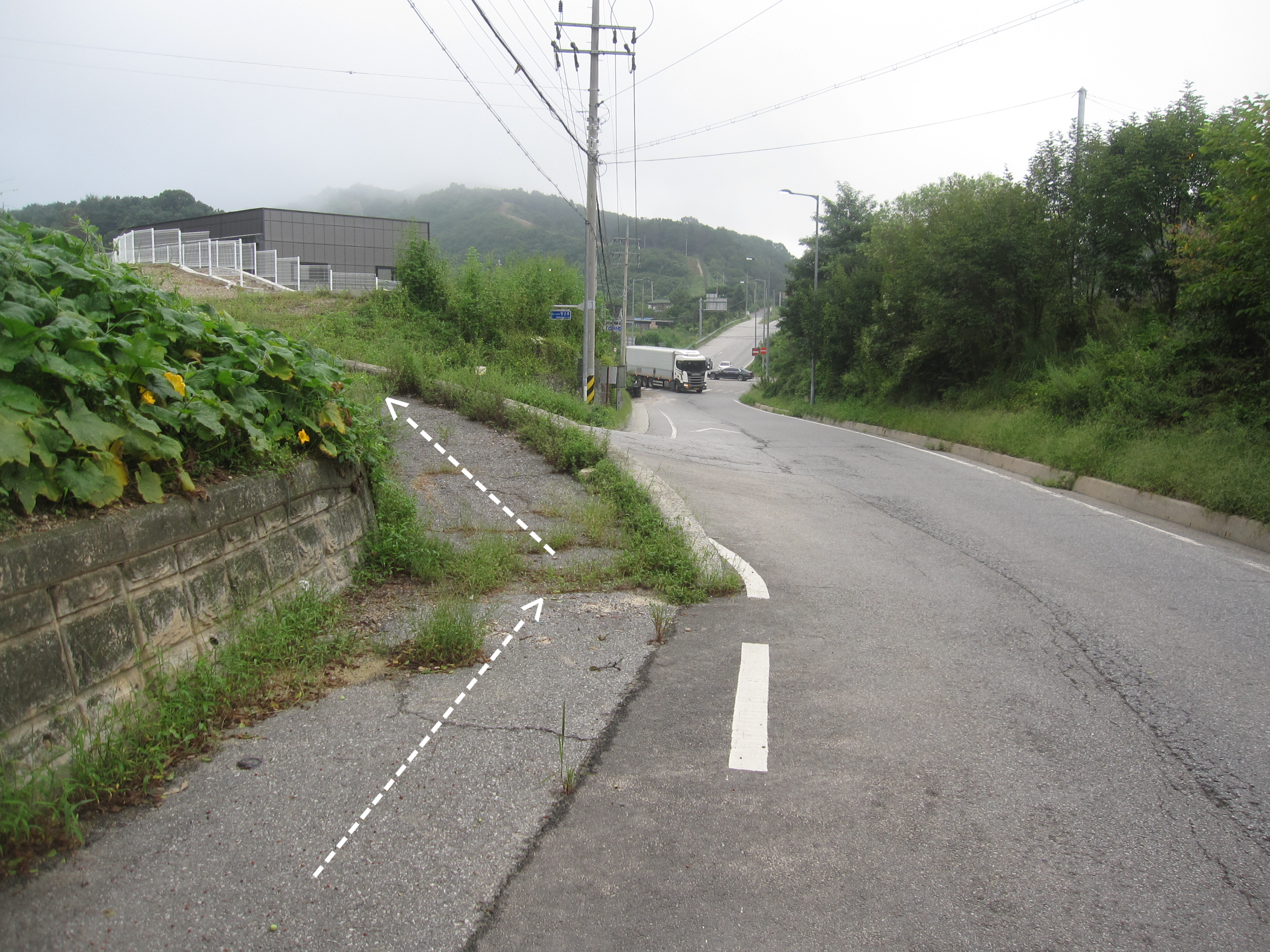 샛길 내리막을 마냥 내려가면 안 되고 가능한 한 군부대 철조망