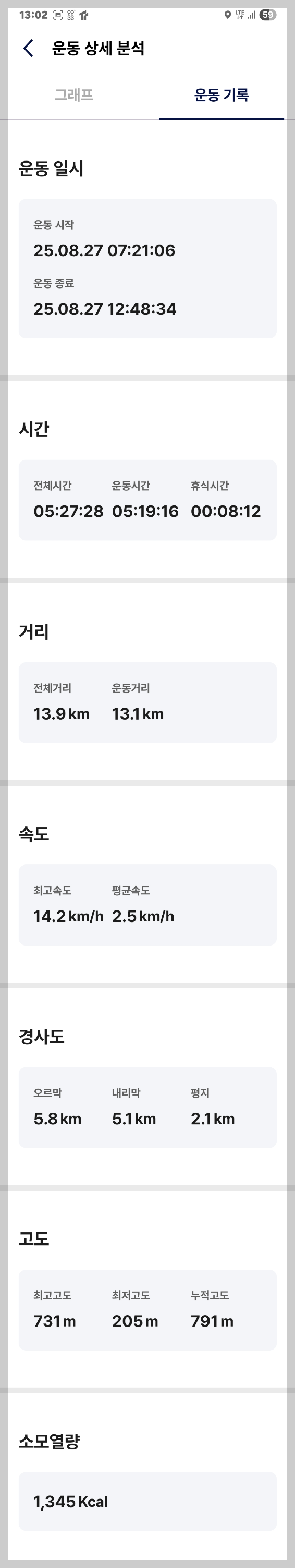 등산은 실질적으로 포장도로를 걷는 것으로 다 채운 셈입니다.
