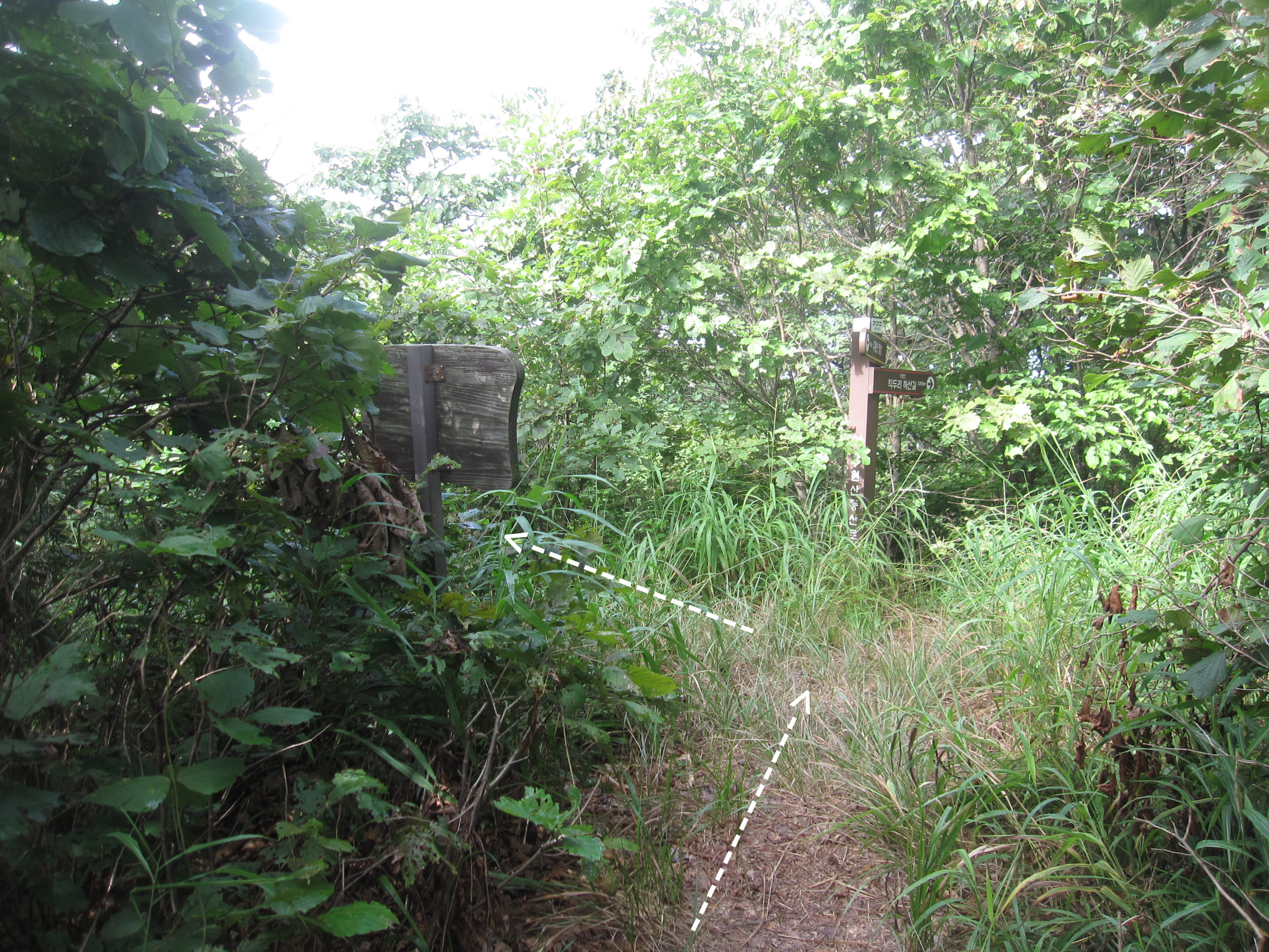 위 갈림길에서 10분쯤 걸은 후에 오른쪽으로 꺾어져야 하는데