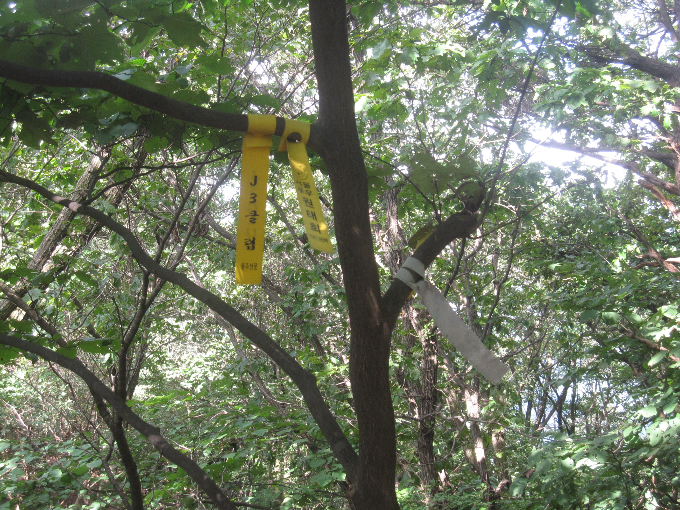 소나무 가지에 리본들이 다수 매달려 있는 것만이 정상 표식의