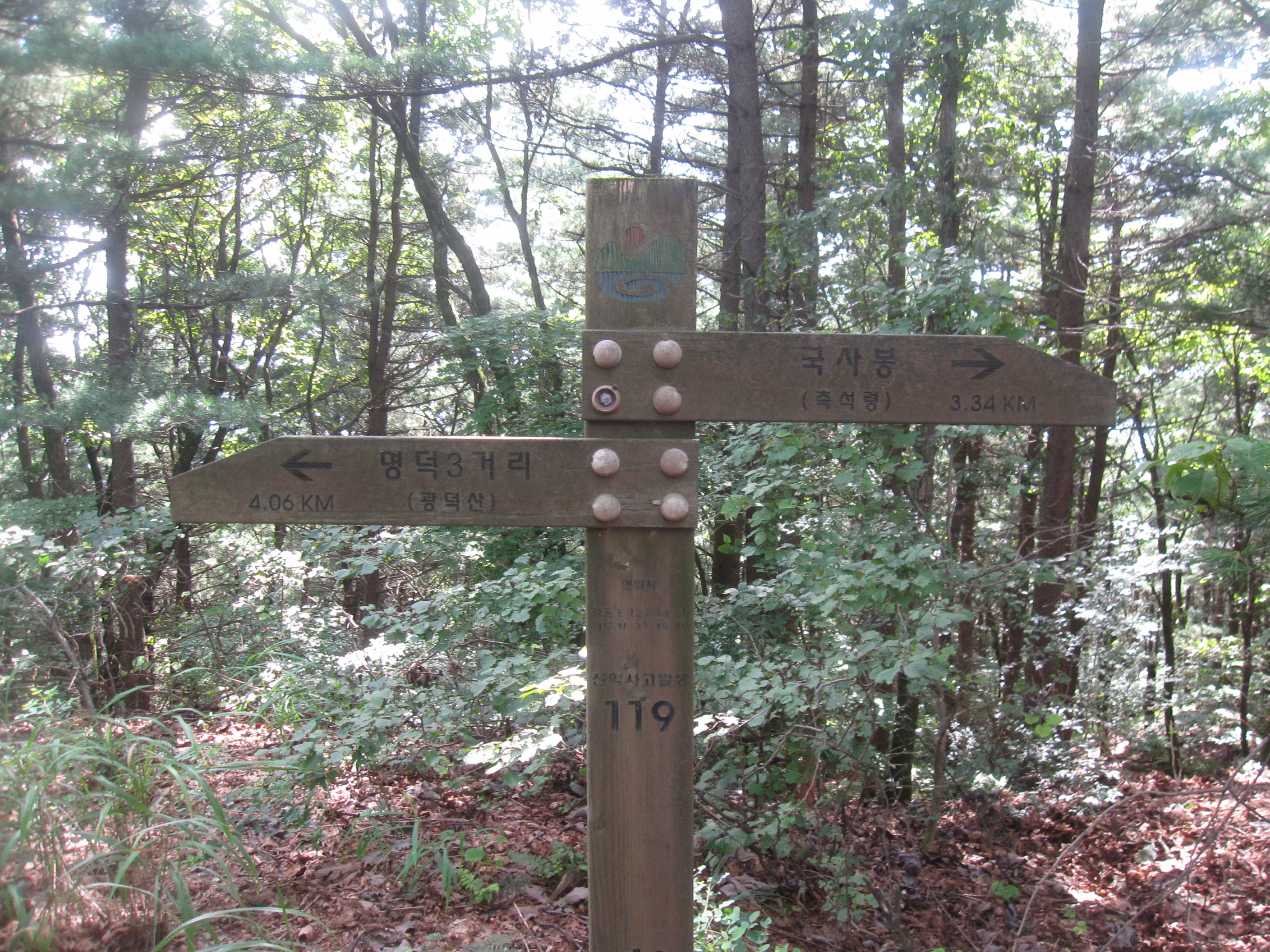여기서 이정표 상 국사봉 방향으로 갑니다.