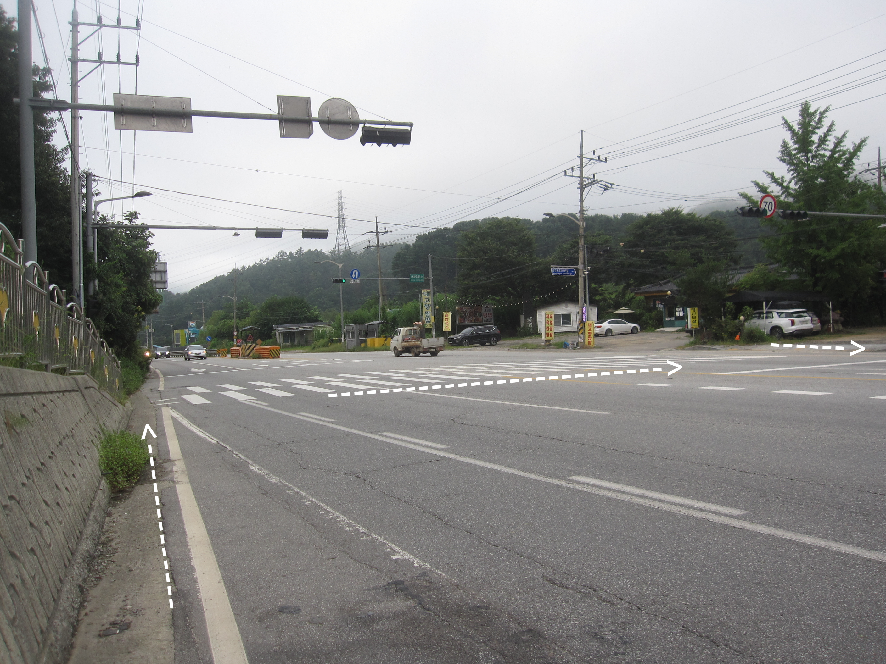 여기서 가야 할 길은 진행 방향 왼쪽인데 이정표에는 이쪽 길이