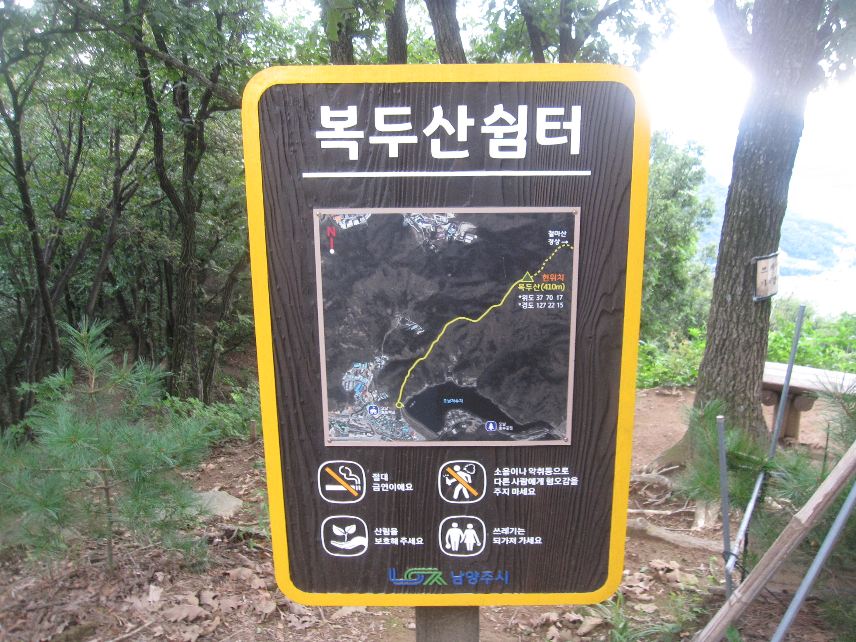 마침내 오남저수지 쪽 등산로 입구에 당도함으로써 오늘의