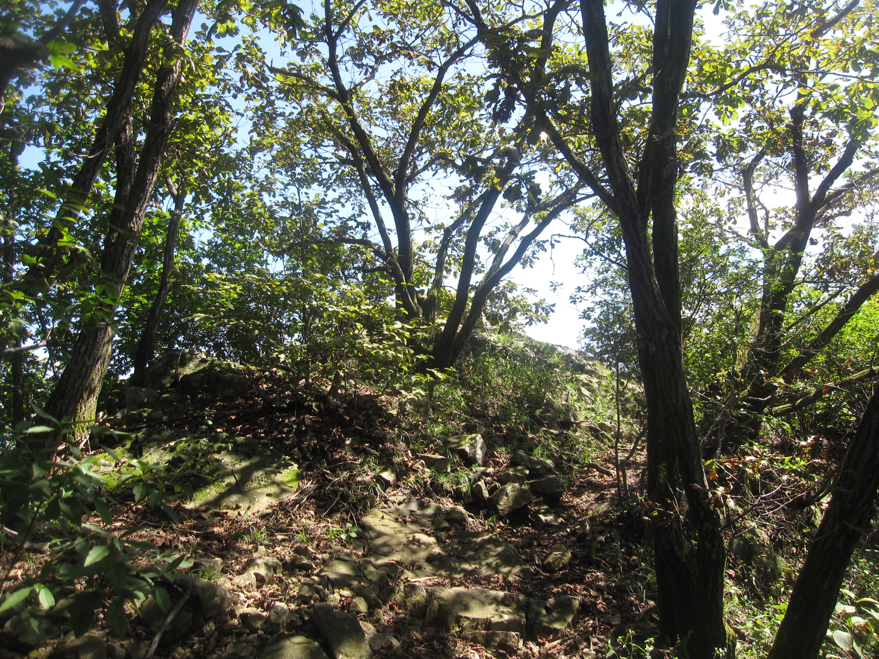 폐 철주가 하나 박혀 있는 낮은 봉우리를 지납니다.