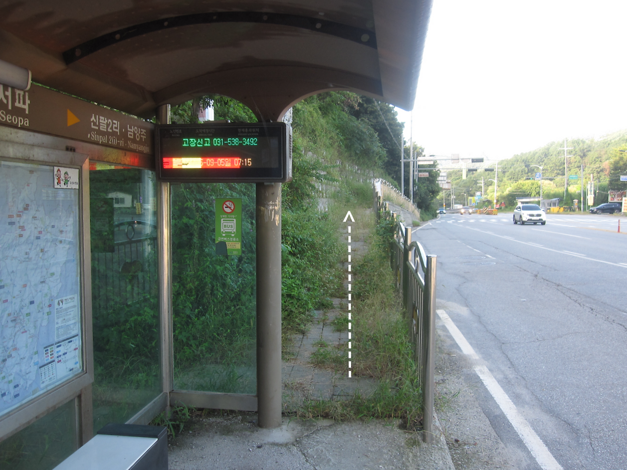 여기서 오른쪽으로 조금 떨어진 곳에 버스정류장이 있습니다.