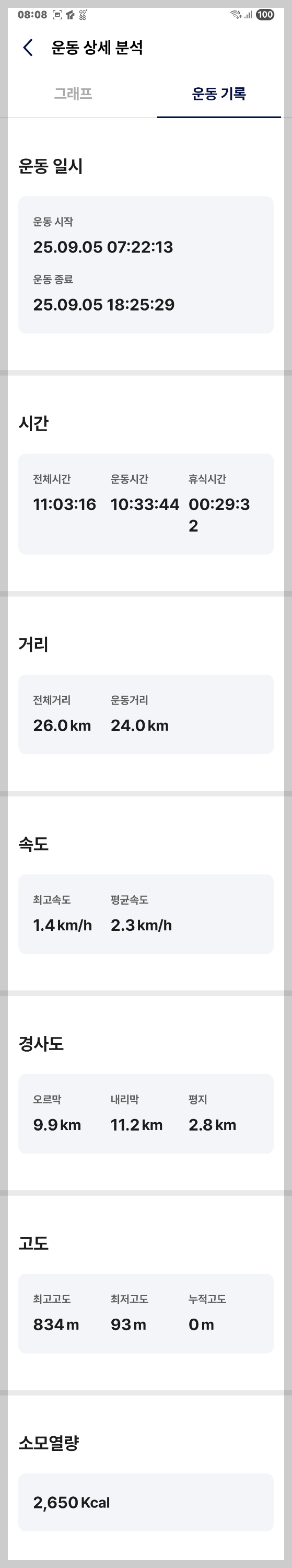 ● 이동거리 및 소요시간 : 26.0 km, 11시간 03분