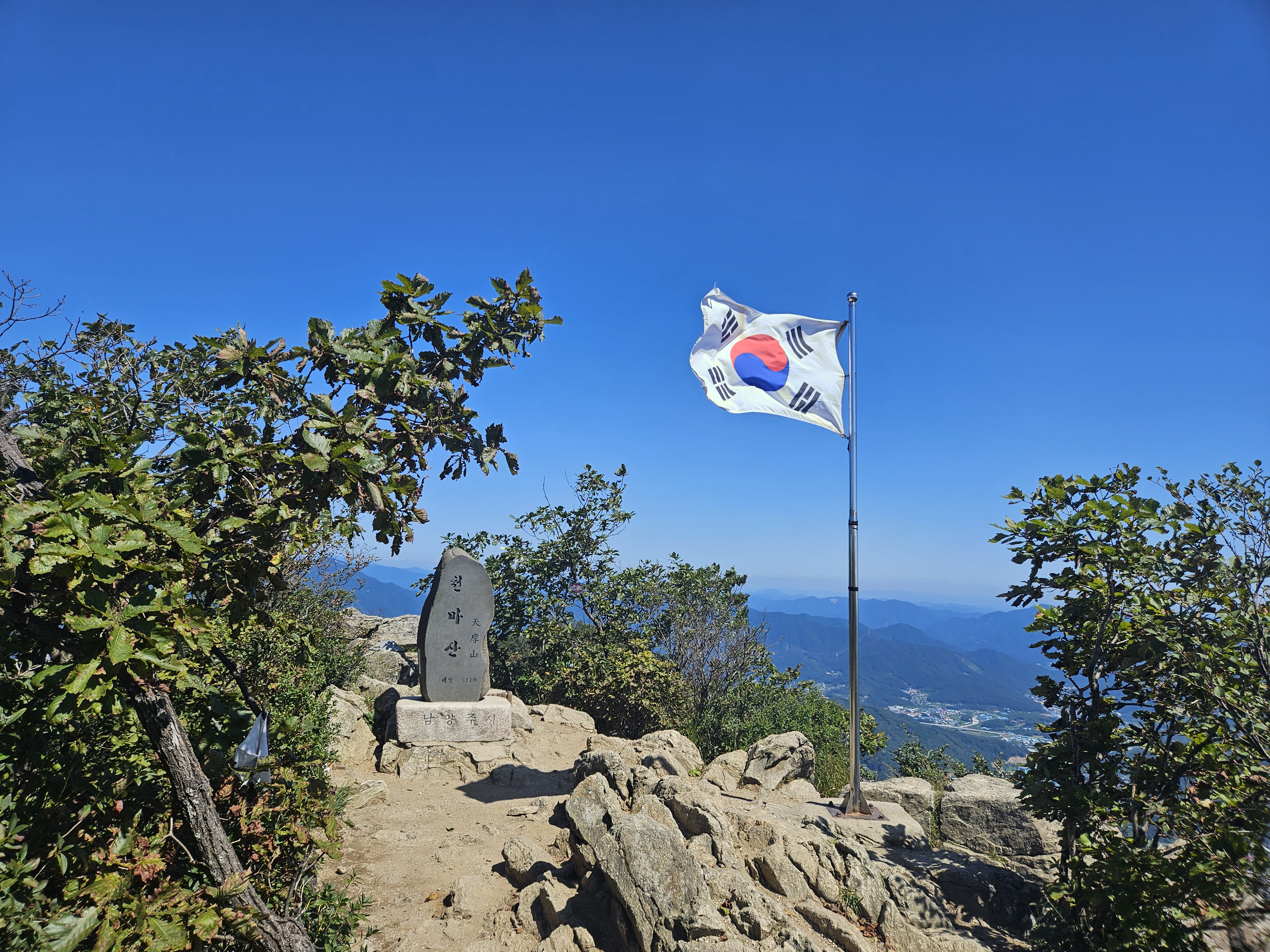 전방에 우뚝 솟아 있는 건 바로 천마산 정상입니다.