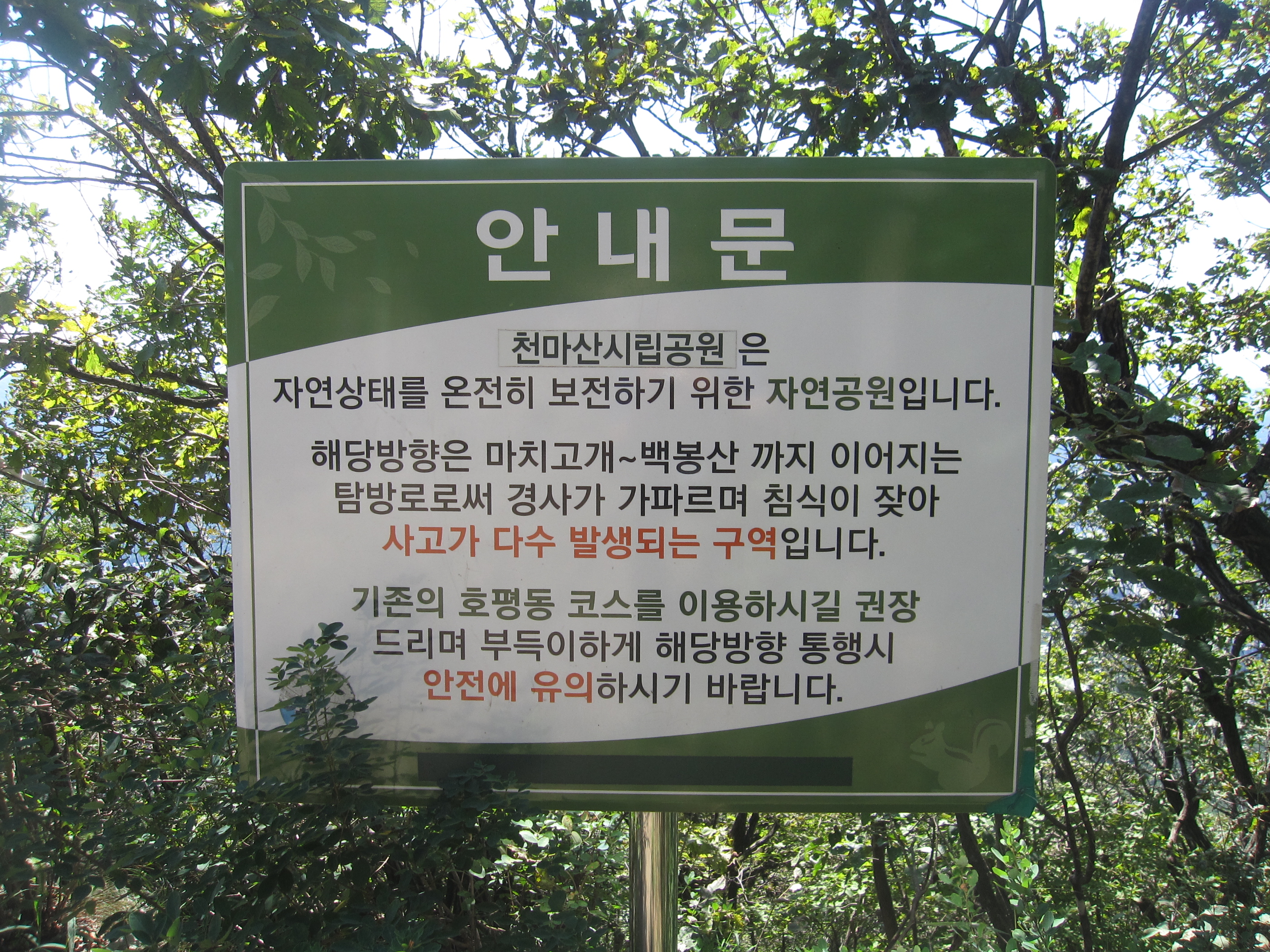 이정표 상 천마산 방향으로만 진행해야한다는 원칙은 여전히 유효