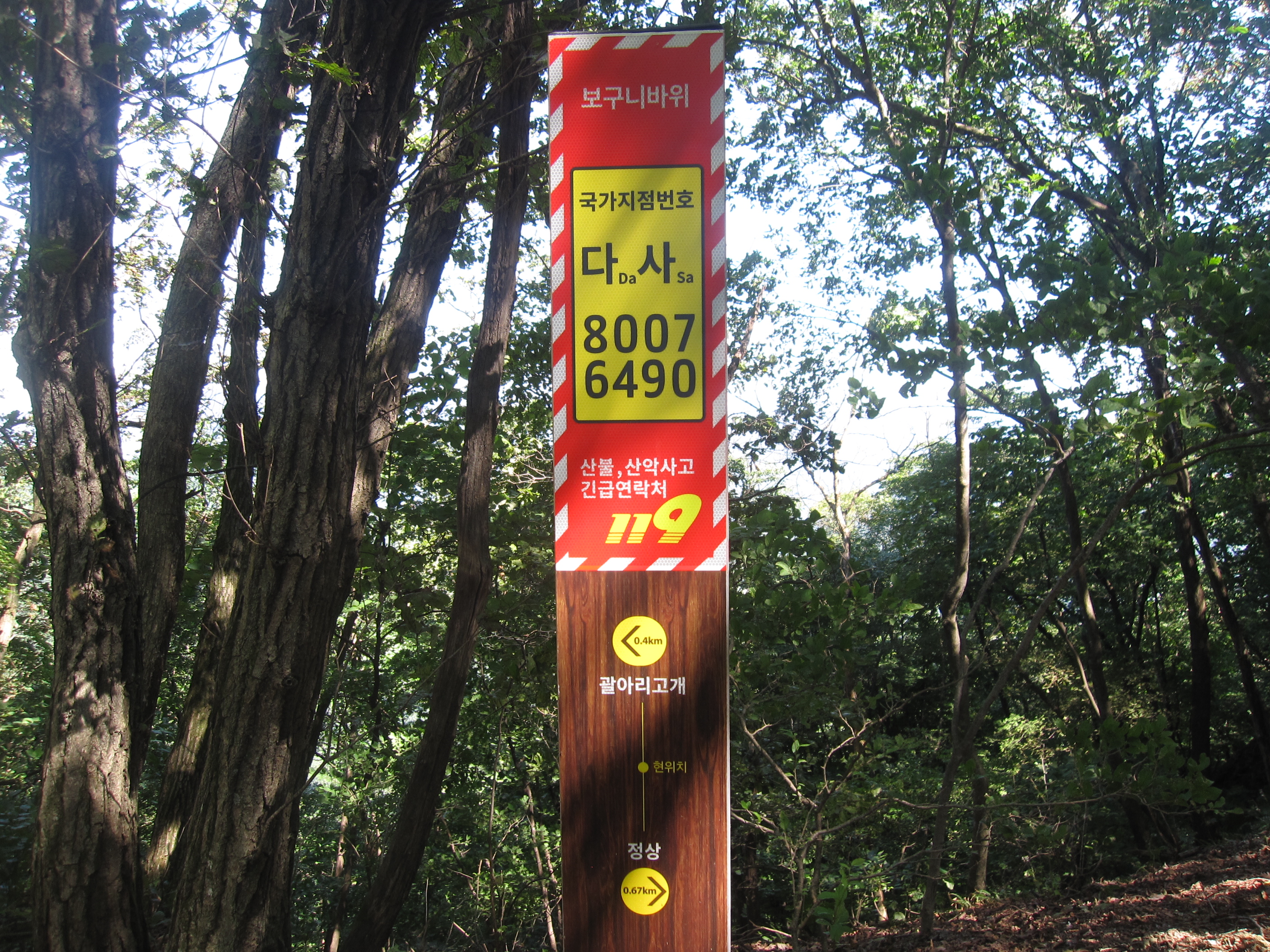 등산로 입구에 오늘의 첫 이정표가 서 있습니다.