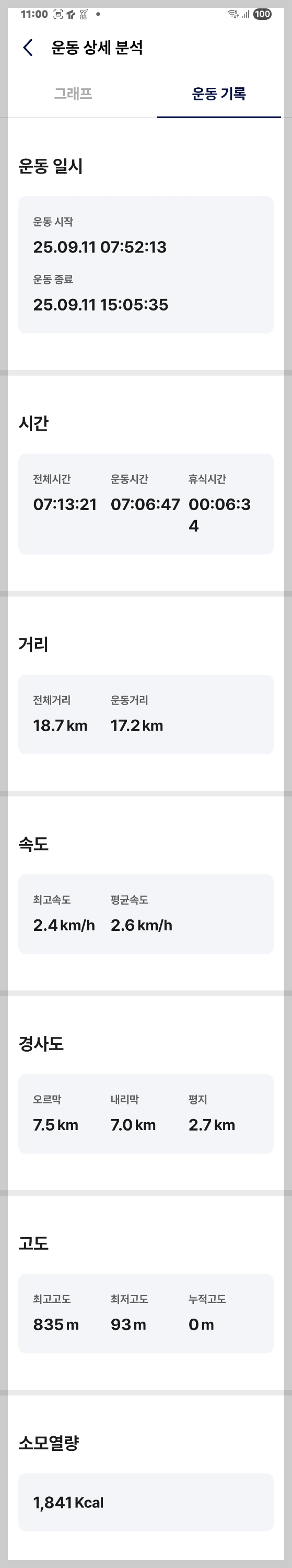 ● 이동거리 및 소요시간 : 18.7 km, 7시간 13분