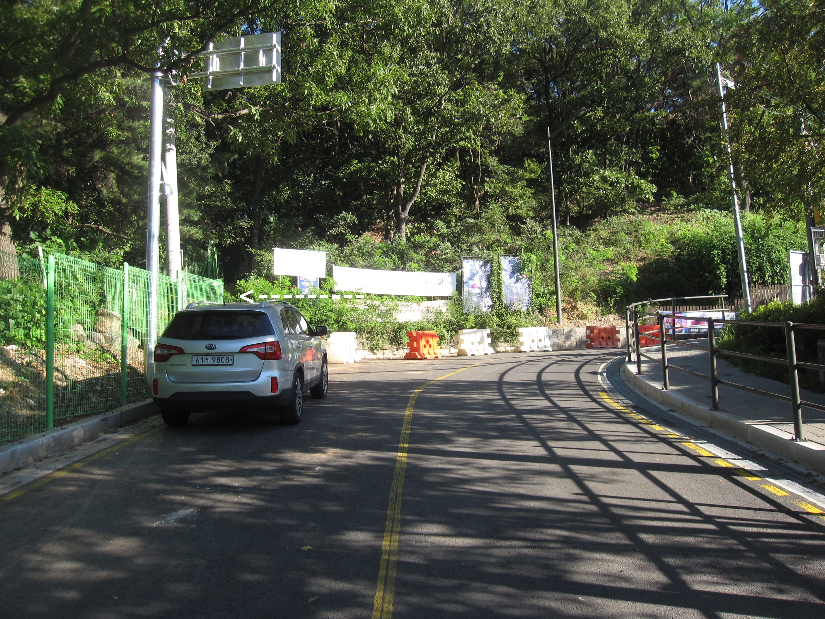 갓길을 걸어야 하지만 통행 차량이 그다지 많지는 않아 큰