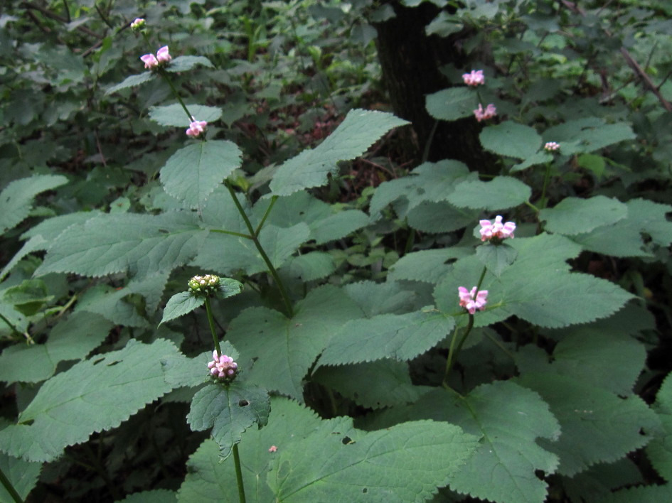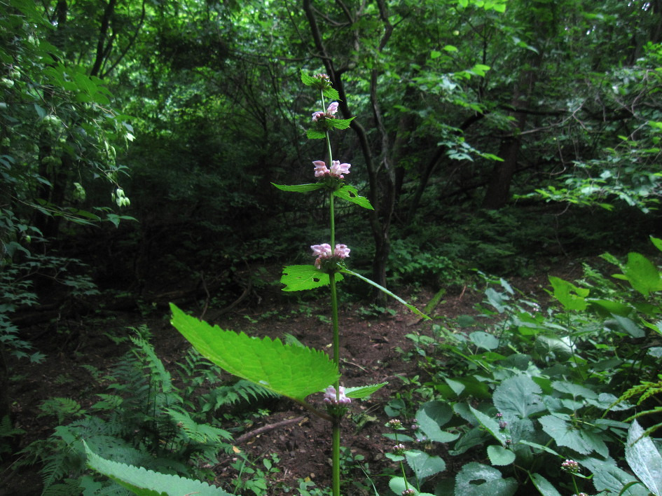 뿌리잎은 없으며 줄기잎은 마주나고 잎자루가 길며 심장상 난형,