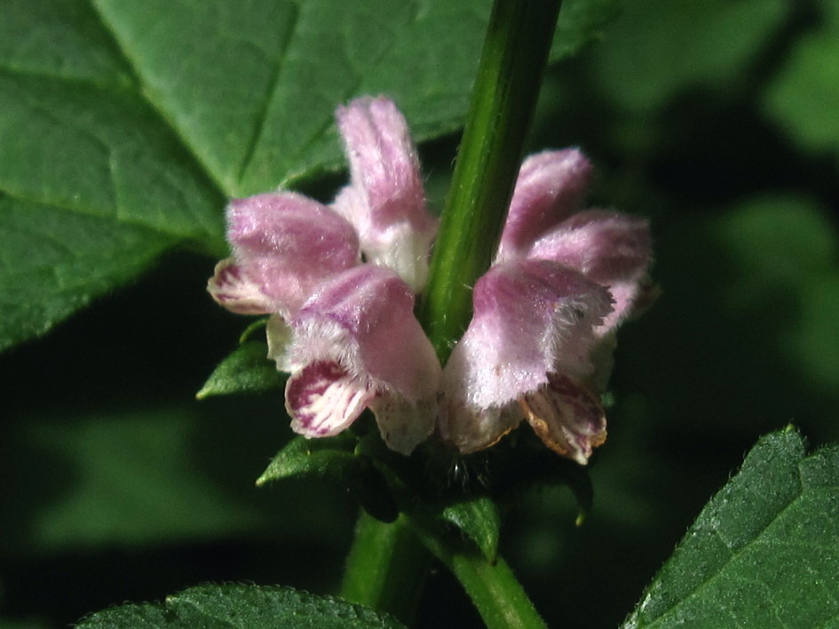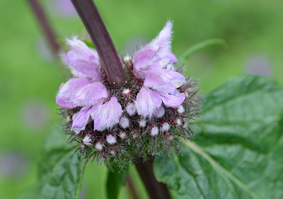 꽃부리는 순형이고 상순은 모자형으로서 겉에 우단같은 털이