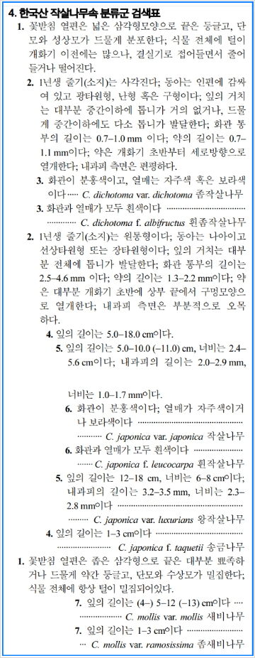 다음은 2012년 식물분류학회지에 실린 논문 "한국산 작살나무와