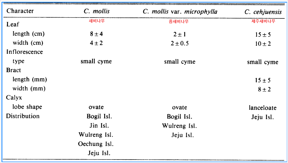 또한 새비나무는 잎의 크기가 8±4 x 4±2이나 제주새비나무는