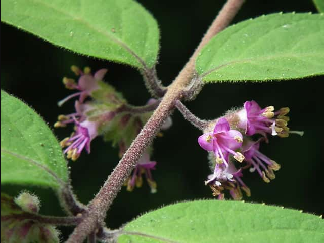 작살나무와 새비나무의 잡종으로 꽃받침이 얕게 갈라지며 털이