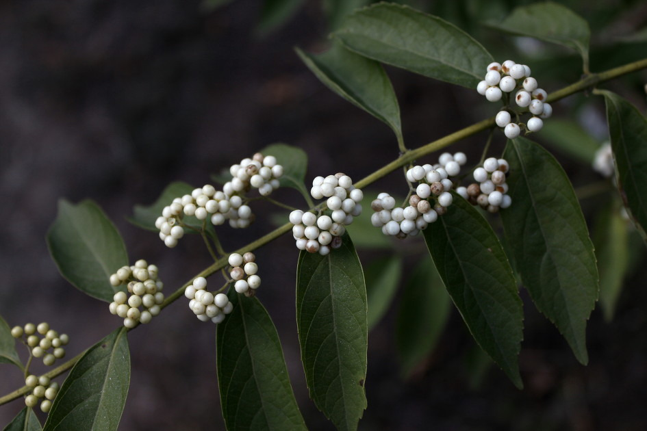 꽃과 열매가 흰색인 점을 제외하고는 좀작살나무의 특징을