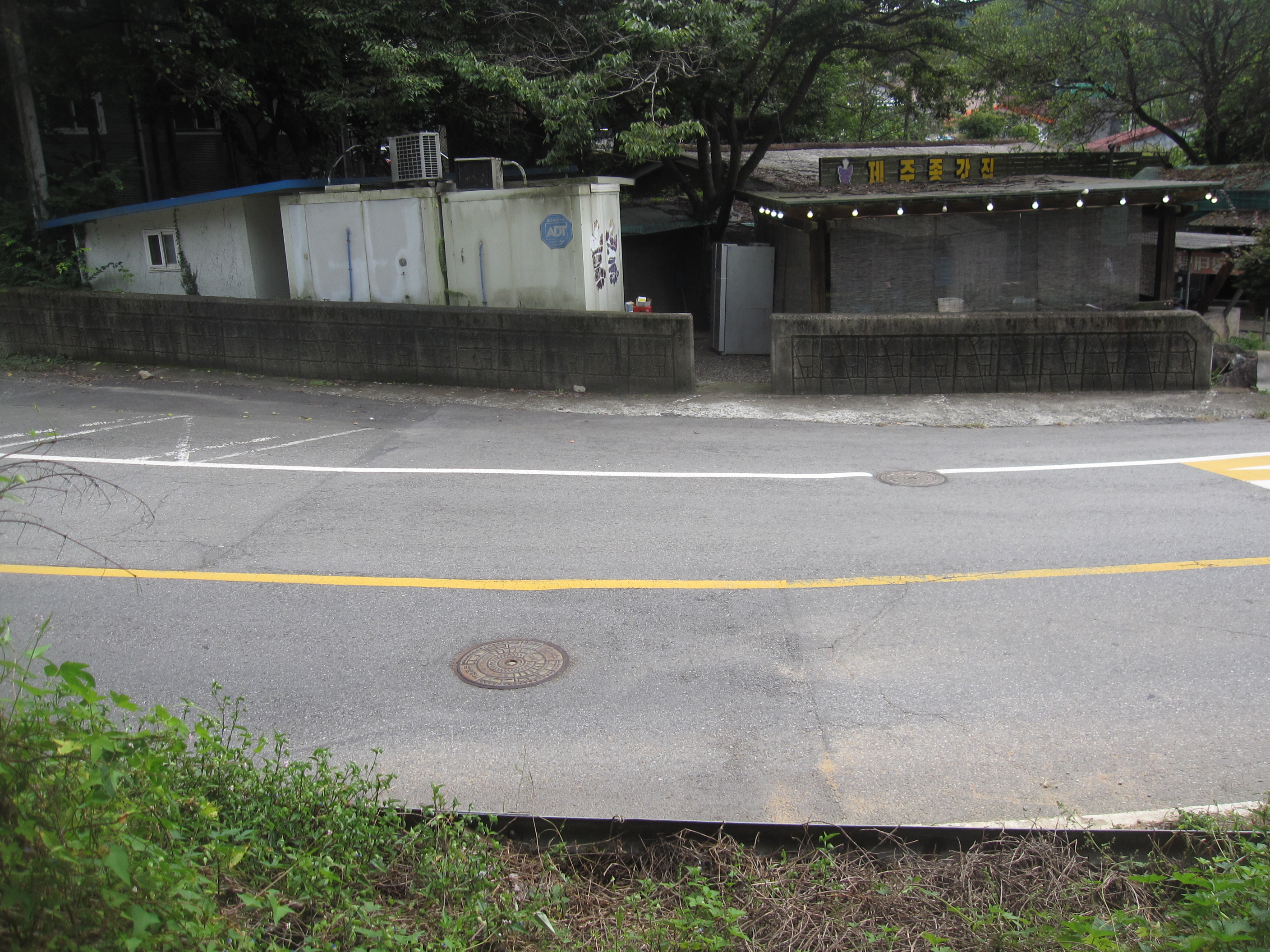 그 입구는 전에 없던 가드레일로 막혀 있는데 그냥 넘어갈 수