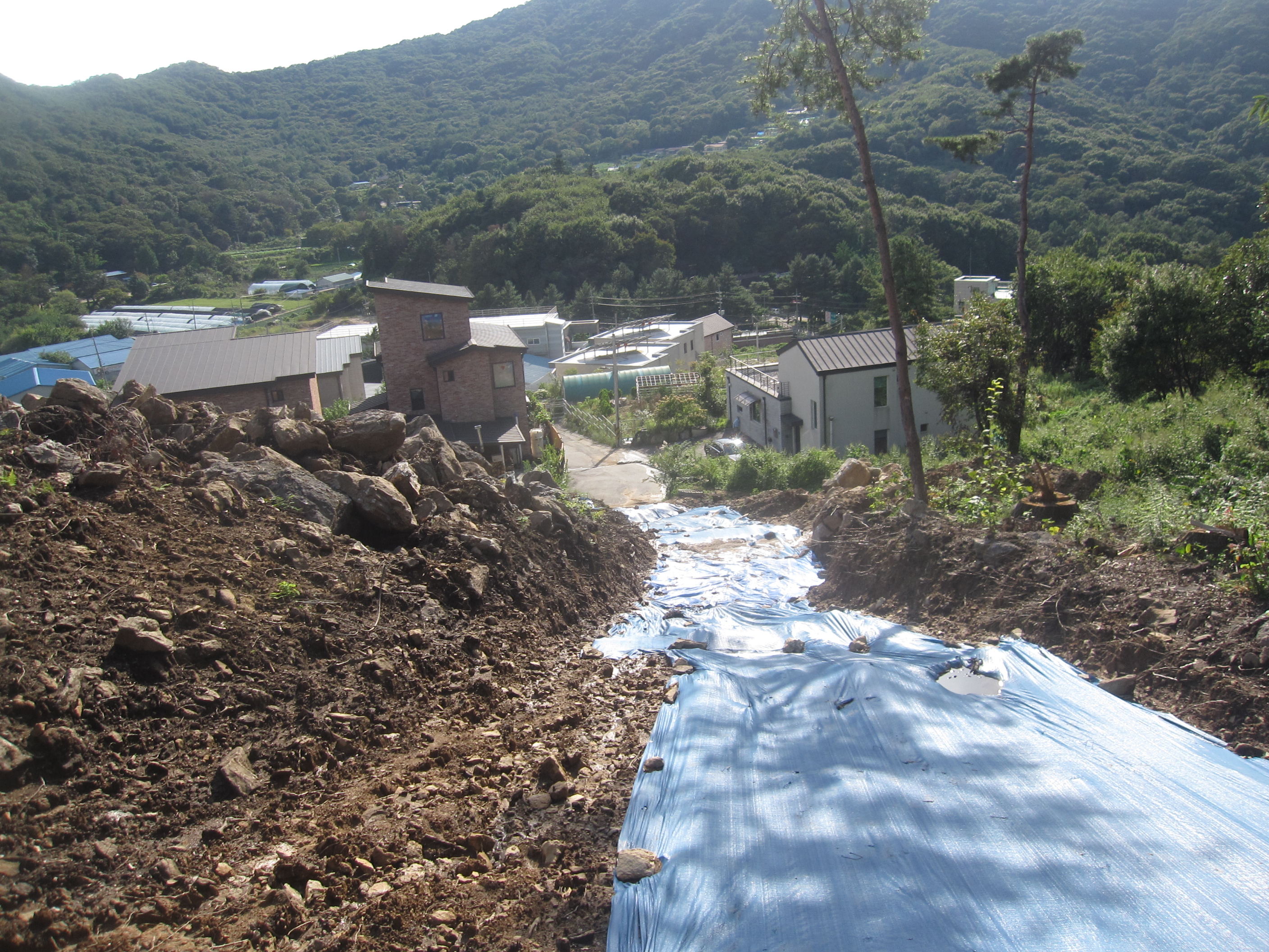 급경사지 바닥에마저 철사 그물망이 깔려 있어 발밑이 미끄럽기