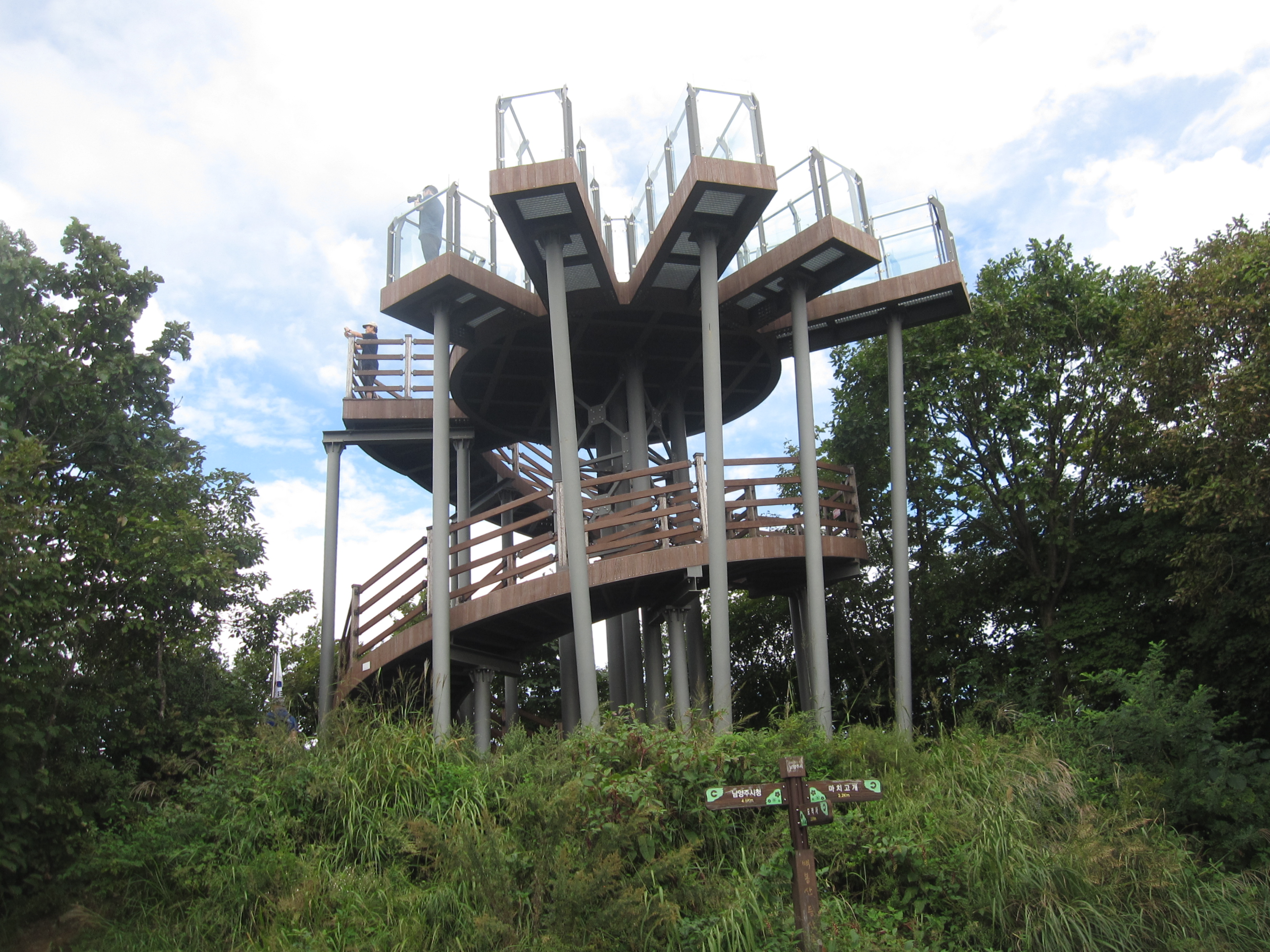 이곳에 있는 목조 전망대가 여느 전망대들과는 다른 모습이라서