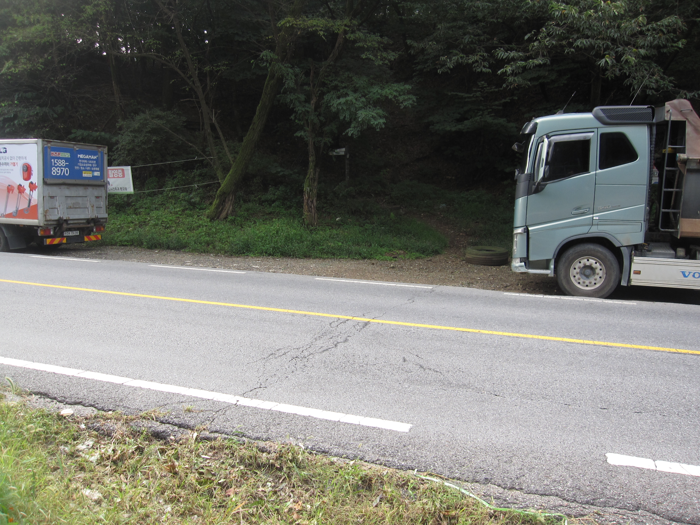 고갯마루가 바로 수레넘어고개인데 그 직전 오른쪽, 뒷면이 보이는