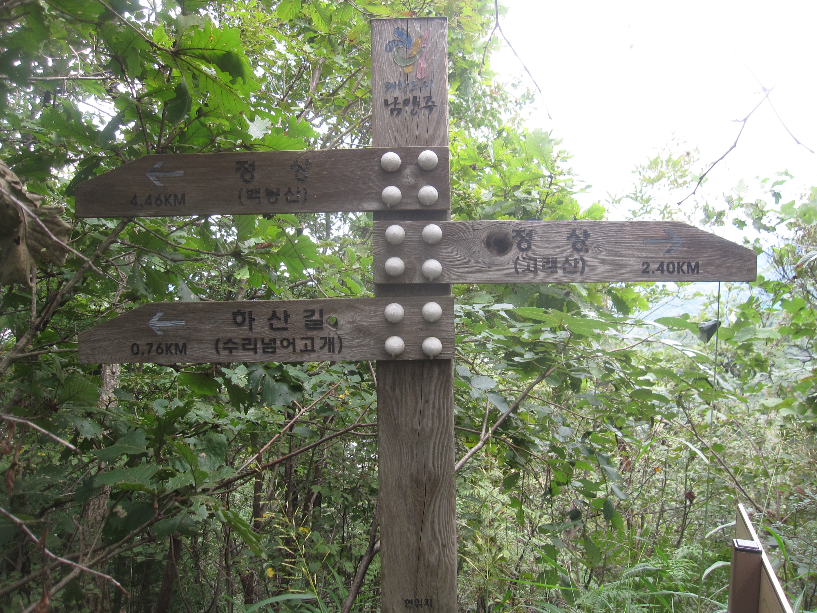 힘겹게 가풀막을 톺아 오르다 보니 이정표가 하나 나타납니다.