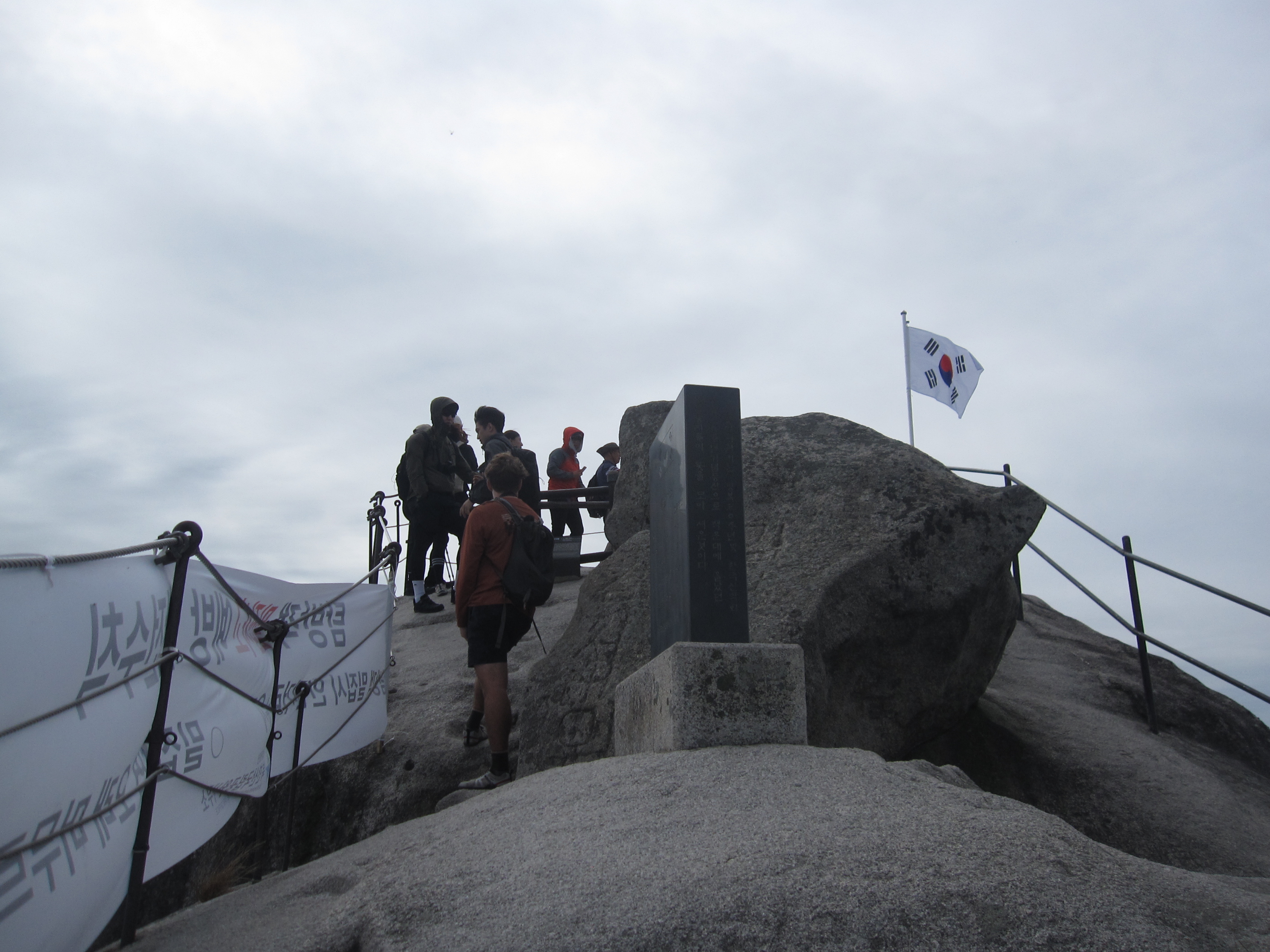 백운대 정상에는 인증샷을 남기려는 등산객들이 줄을 서서