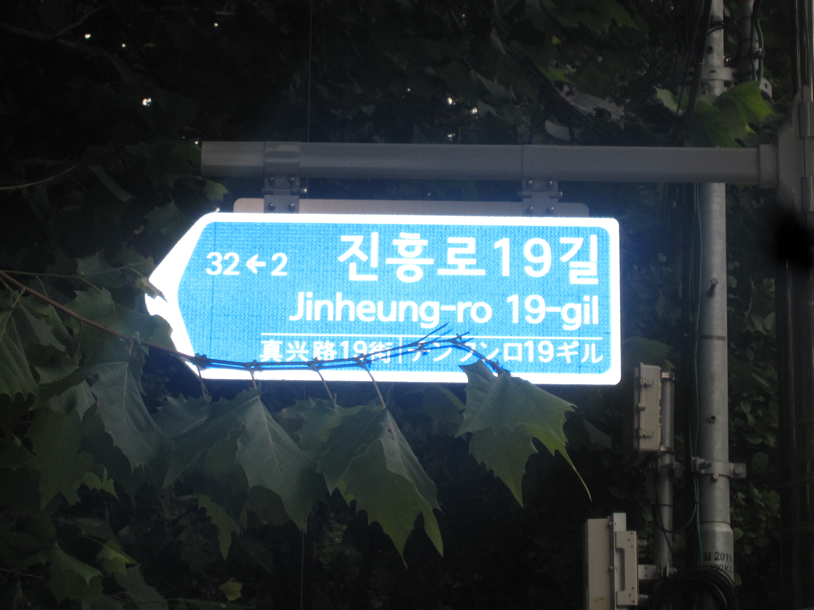 위 사진 오른쪽에 걸려 있는, 아래 교통표지판이 위치 파악에