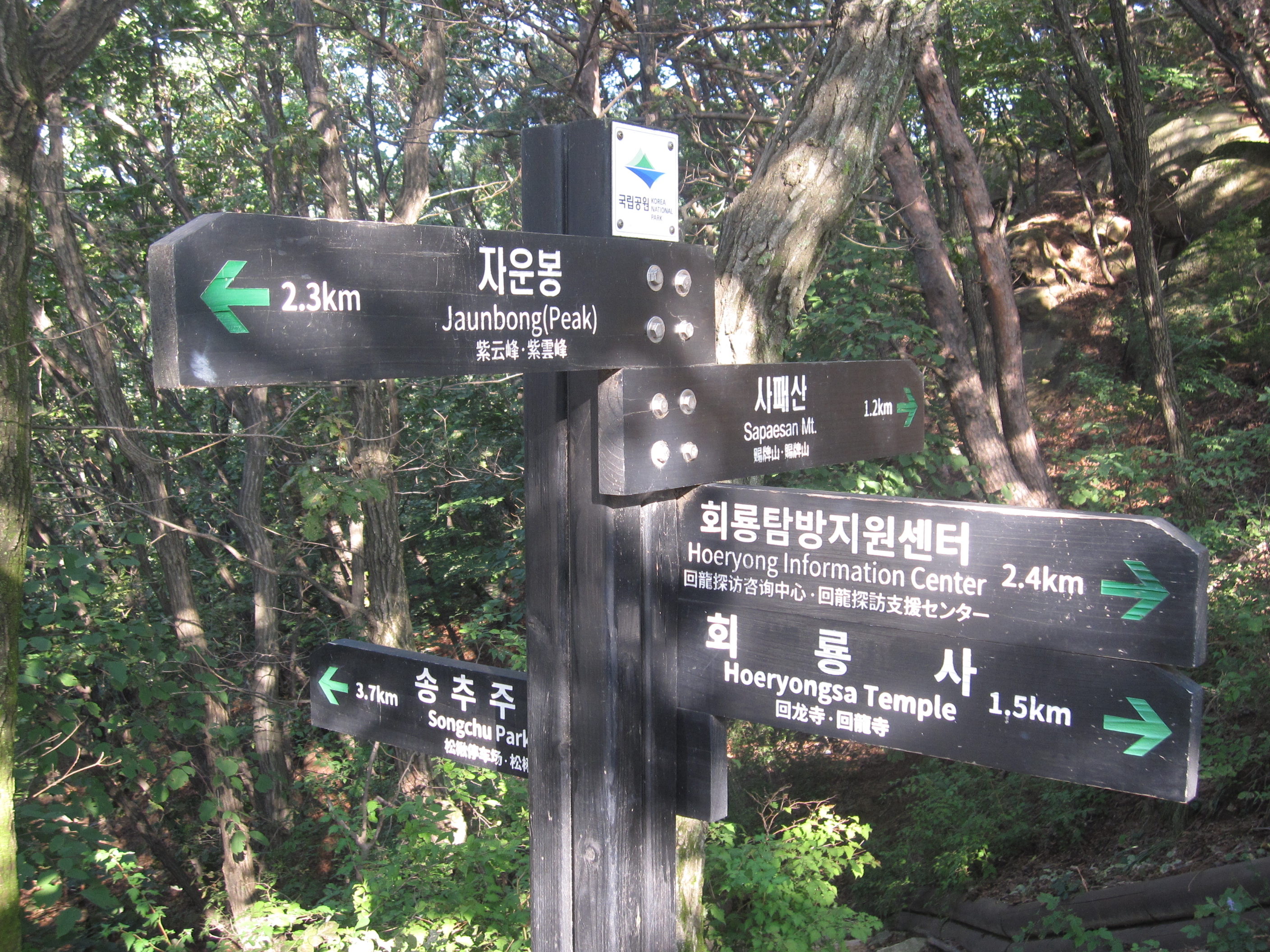 여기서 자운봉까지는 필요한 곳마다 서 있는 이정표가 안내자