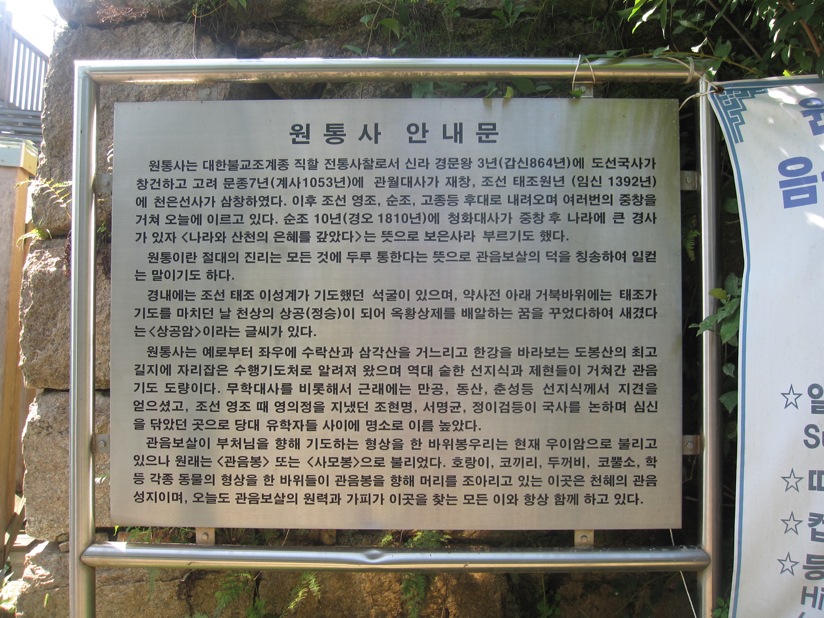 원통사란 이름이 처음 등장하는 아래 이정표 부근에 우이암이