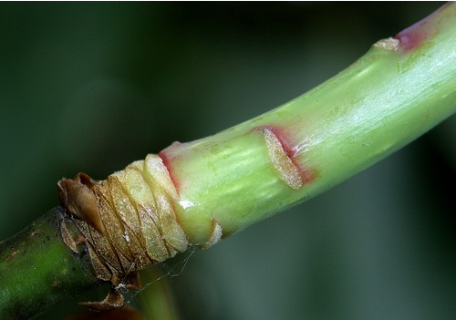 눈비늘과 주걱 모양의 잎이 탈락하면서 당년도 가지가 단번에