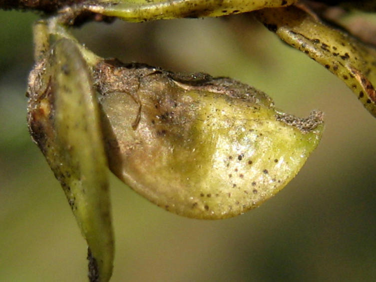 "열매는 시과로 편평한 반달 모양이며 한쪽에만 날개가 있고
