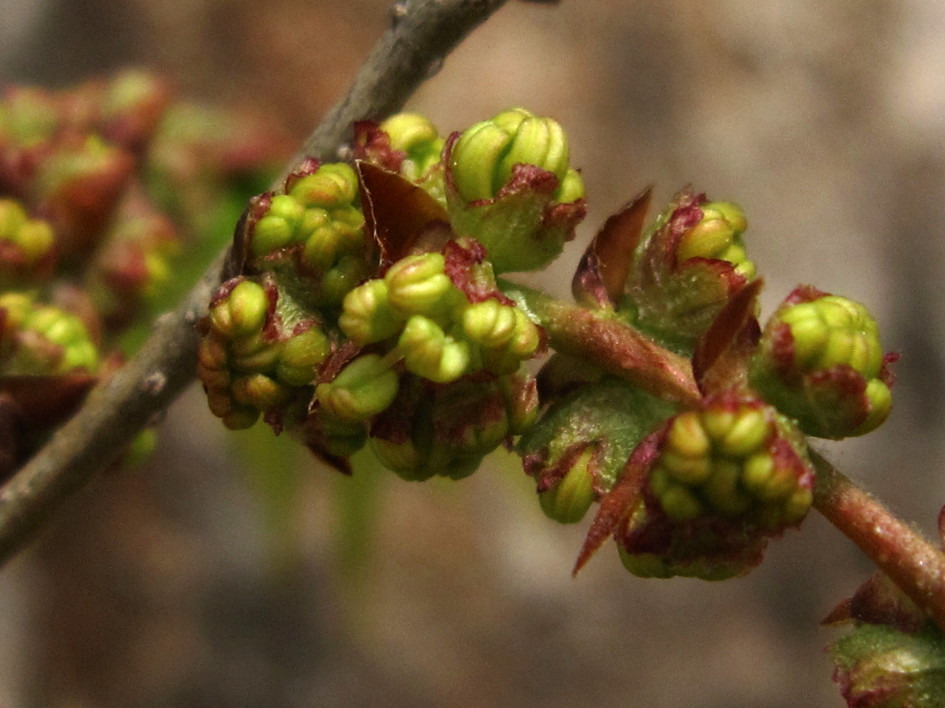 꽃은 암수한그루로 4~5월 초에 잎이 난 직후부터 담황록색으로