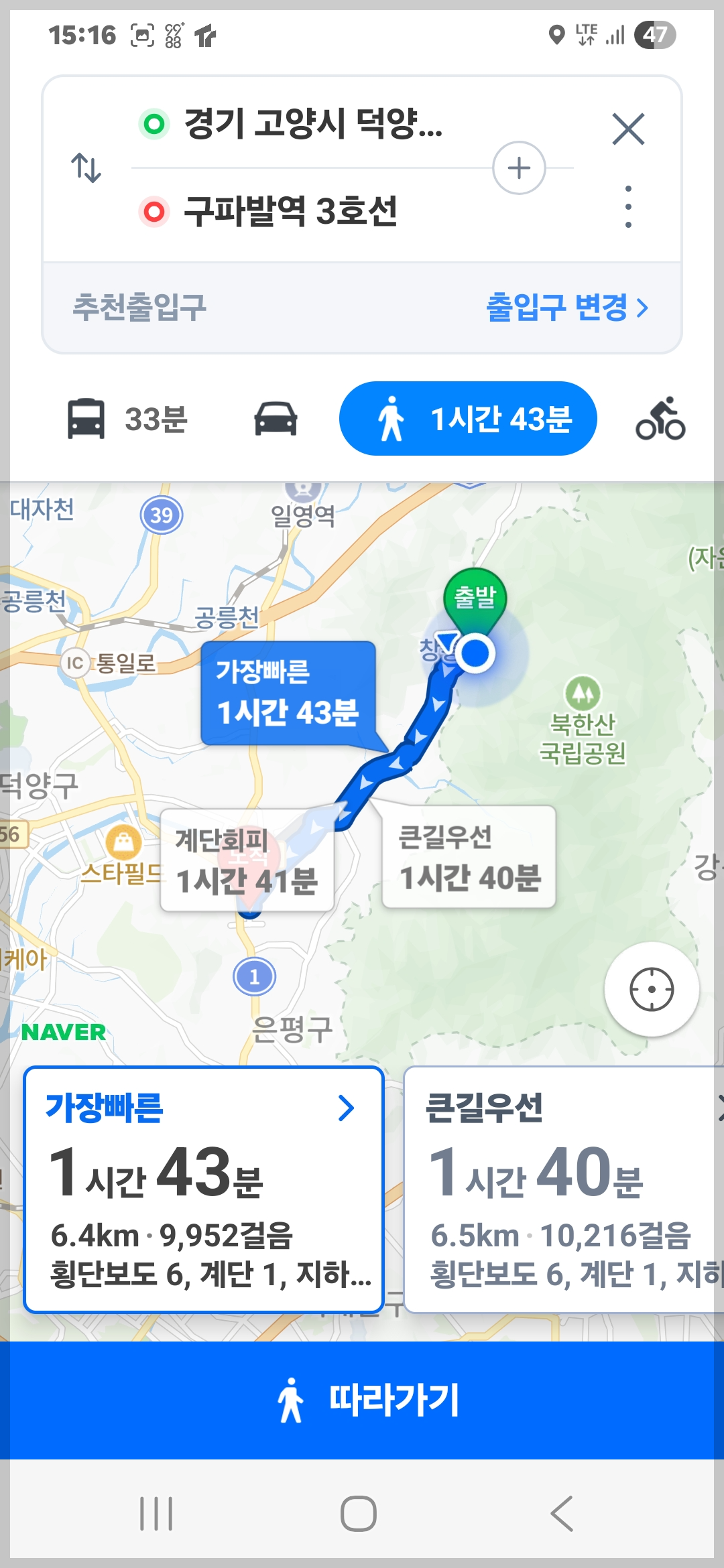 이곳에서부터는 네이버지도 안내를 따라 구파발역까지 걸어