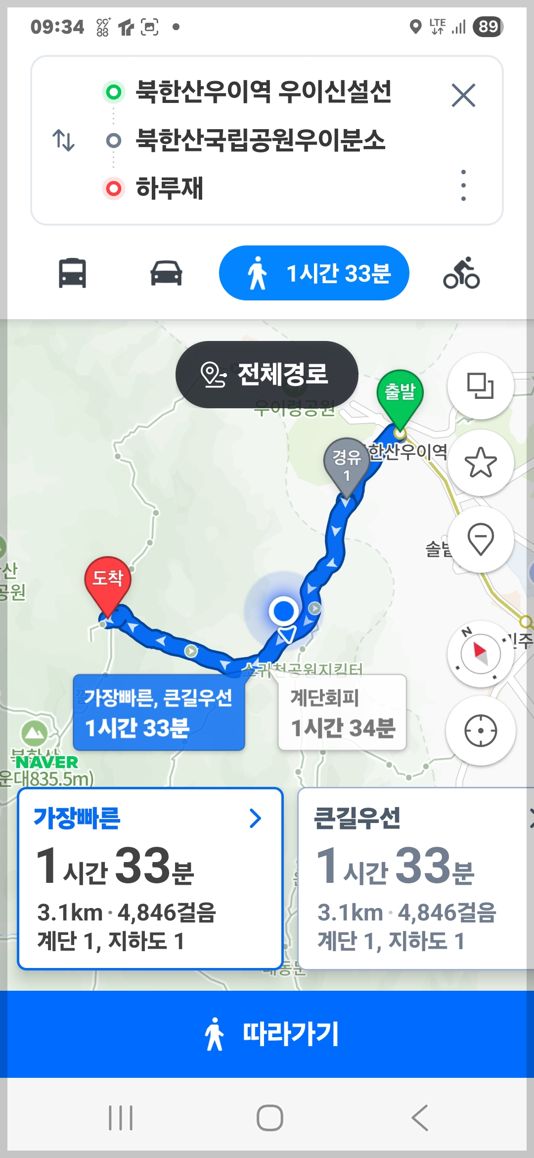 ● 코 스 : 북한산우이역 - 우이분소 - 백운대2공원지킴터 - 하루재